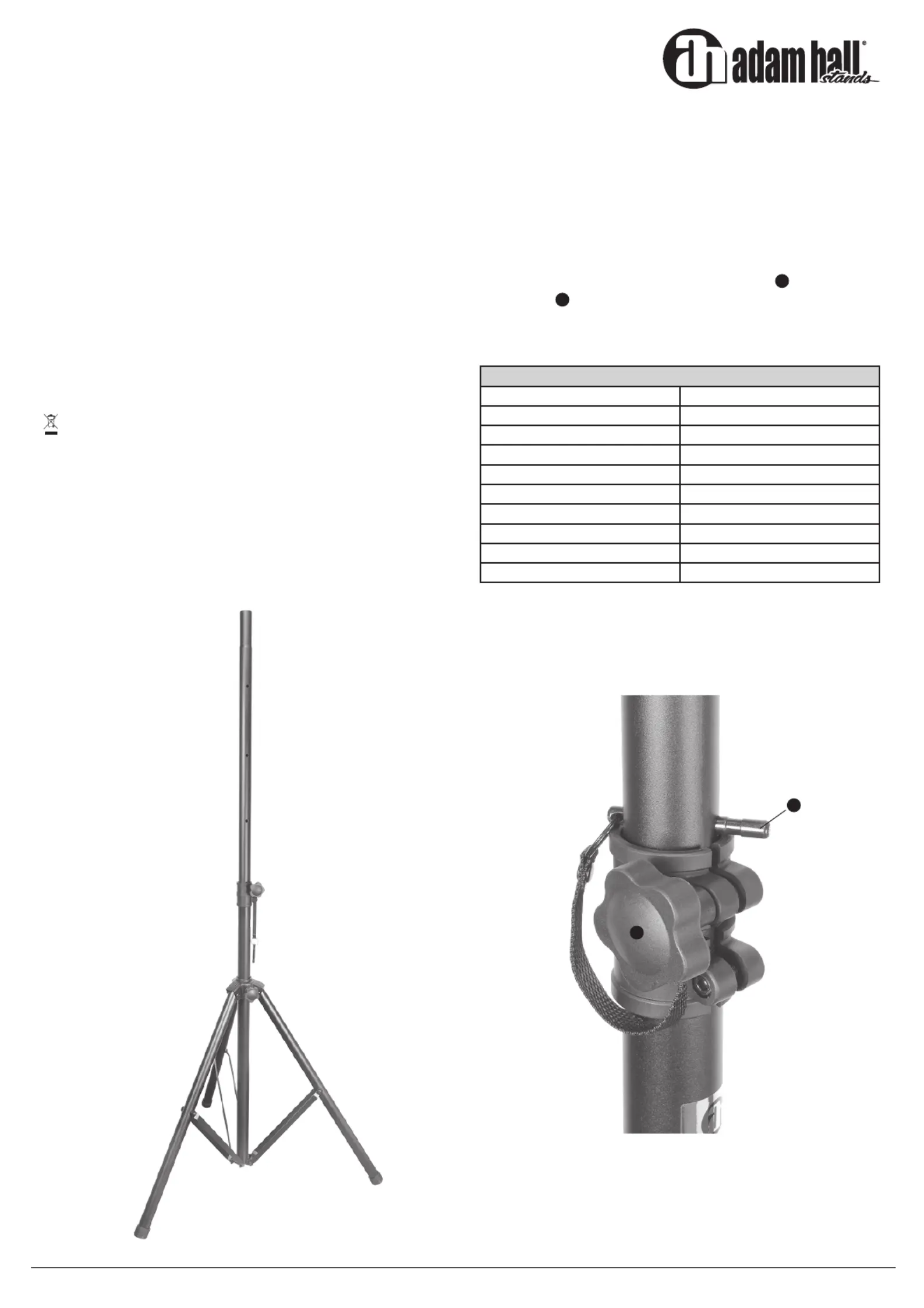 høyttalerstøtte Adam Hall Manualer