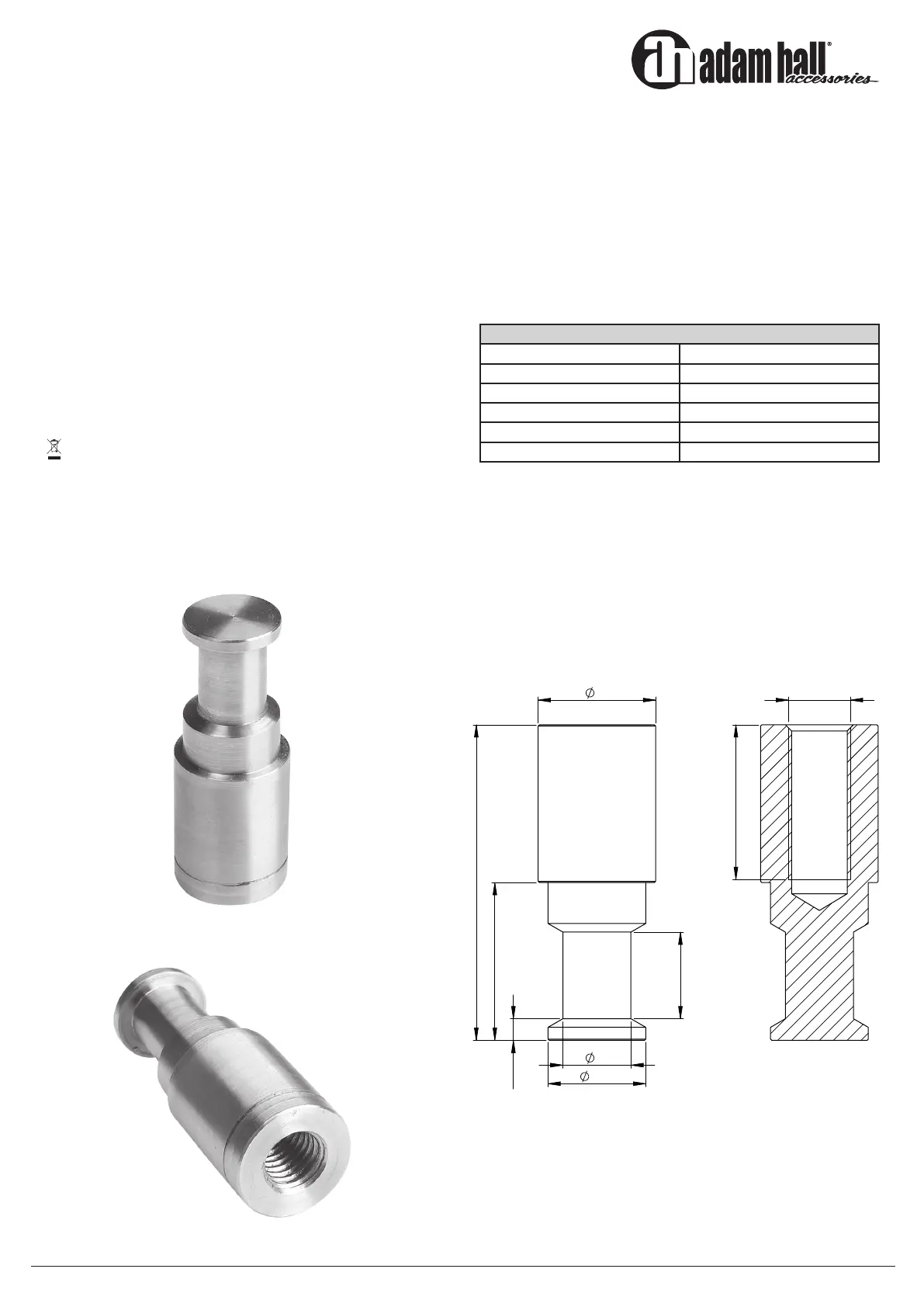 Der SS019 ist ein 16 mm Bolzen aus Edelstahl für die Universalklemme SCP710B, sein M10 Innengewinde ist