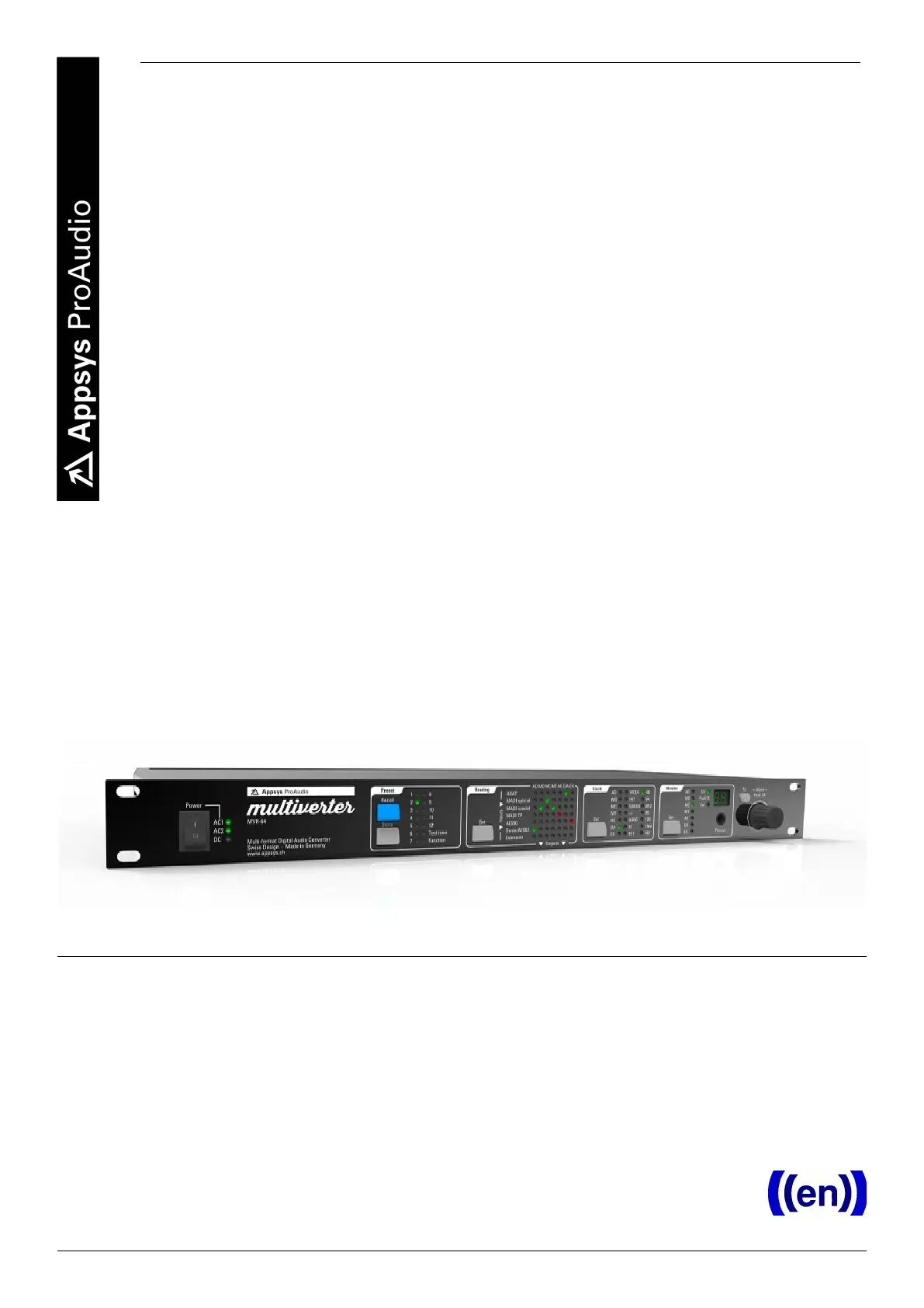 Les nedenfor 📖 manual på norsk for Appsys ProAudio MVR-64 (50 sider) i kategorien lyd / video konverterer. Denne guiden var nyttig for 3 personer og ble vurdert med 4.8 stjerner i gjennomsnitt av 2 brukere