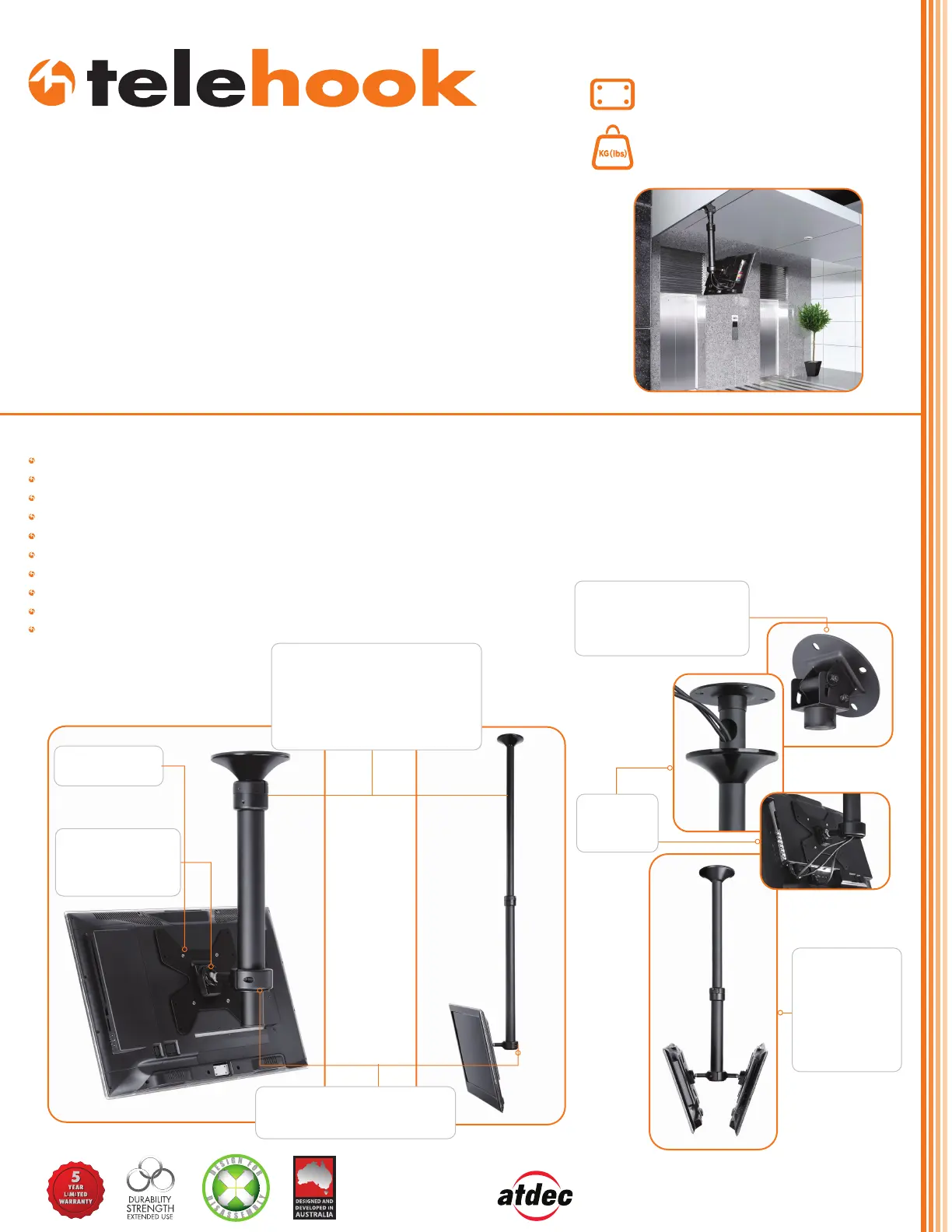 The TH-1040-CT is cutting edge ceiling mount offering superior display versatility,