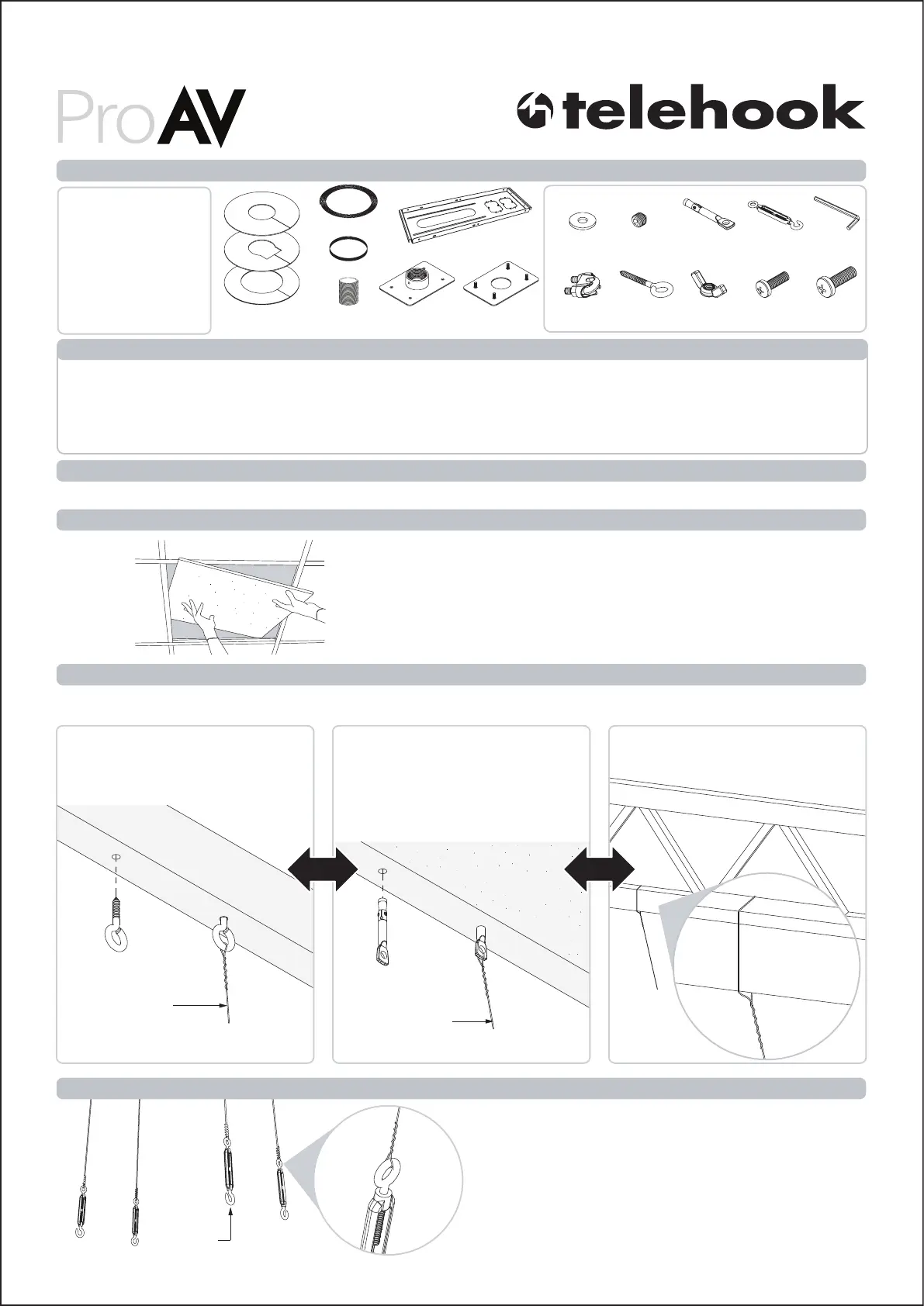 ! IMPORTANT - Install Telehook Projector - Suspended Ceiling Tile 8" as per Installation Instructions.