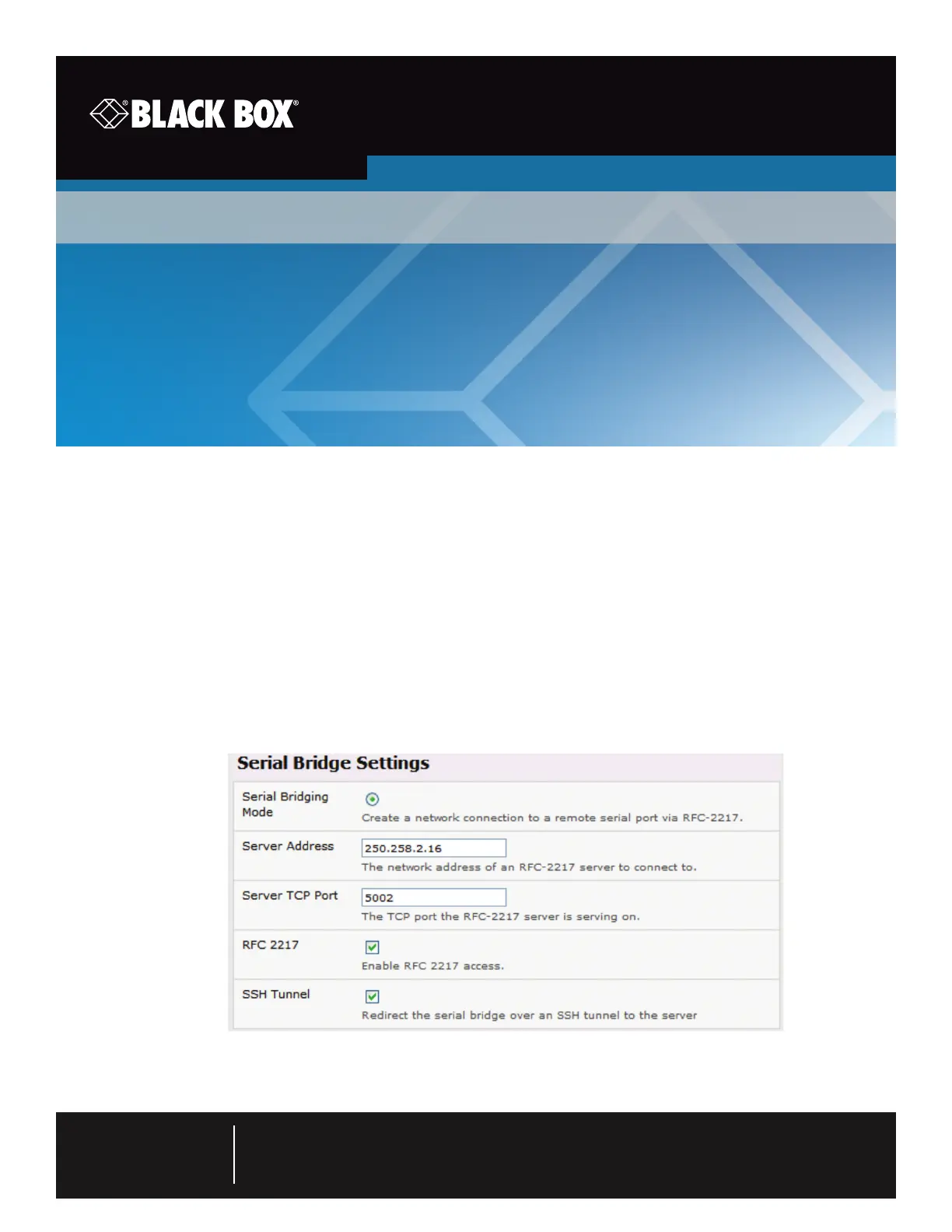 Select SSH Tunnel when configuring the Serial Bridging Setting