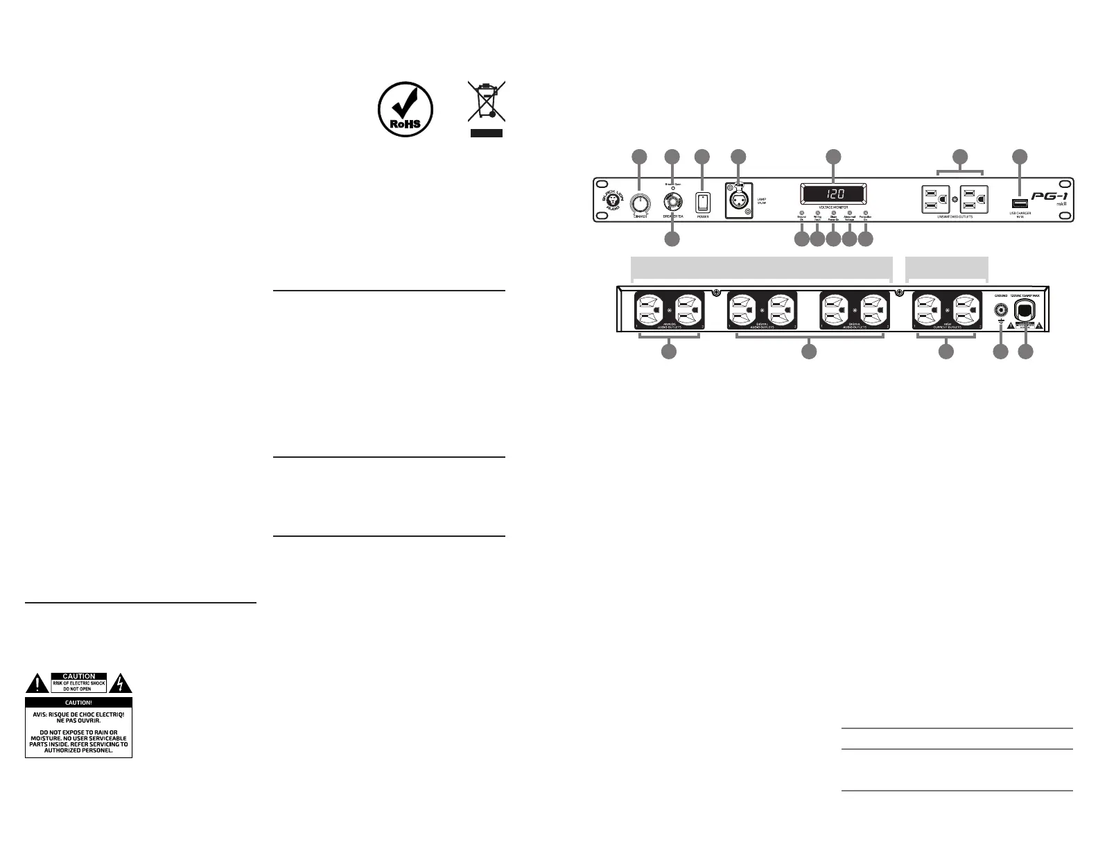 6. Protection ON: When this LED is on, the PG-1 mkII’s power surge