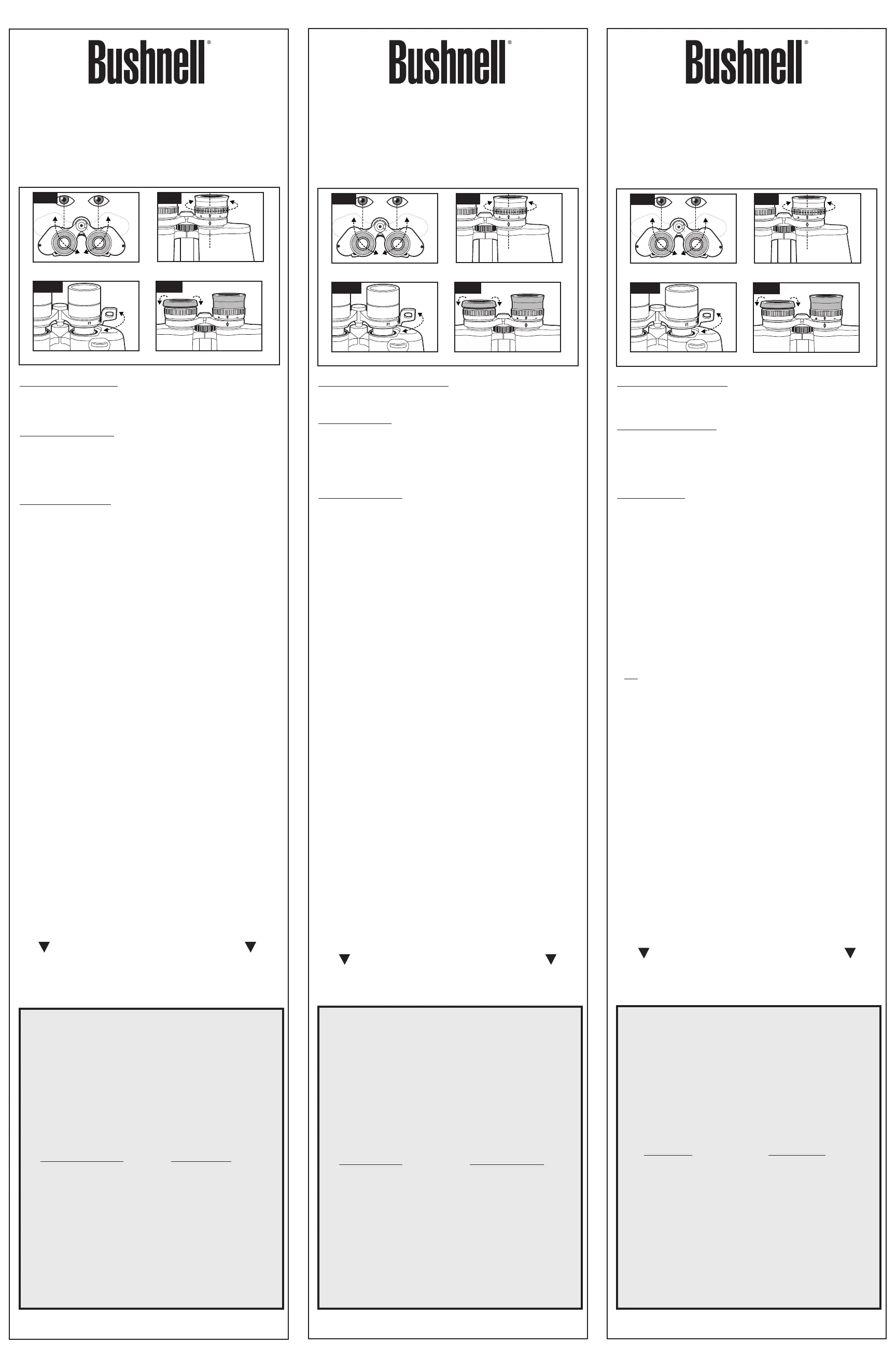 Your Bushnell binocular will provide years of trouble-free service if it receives the normal care you would give