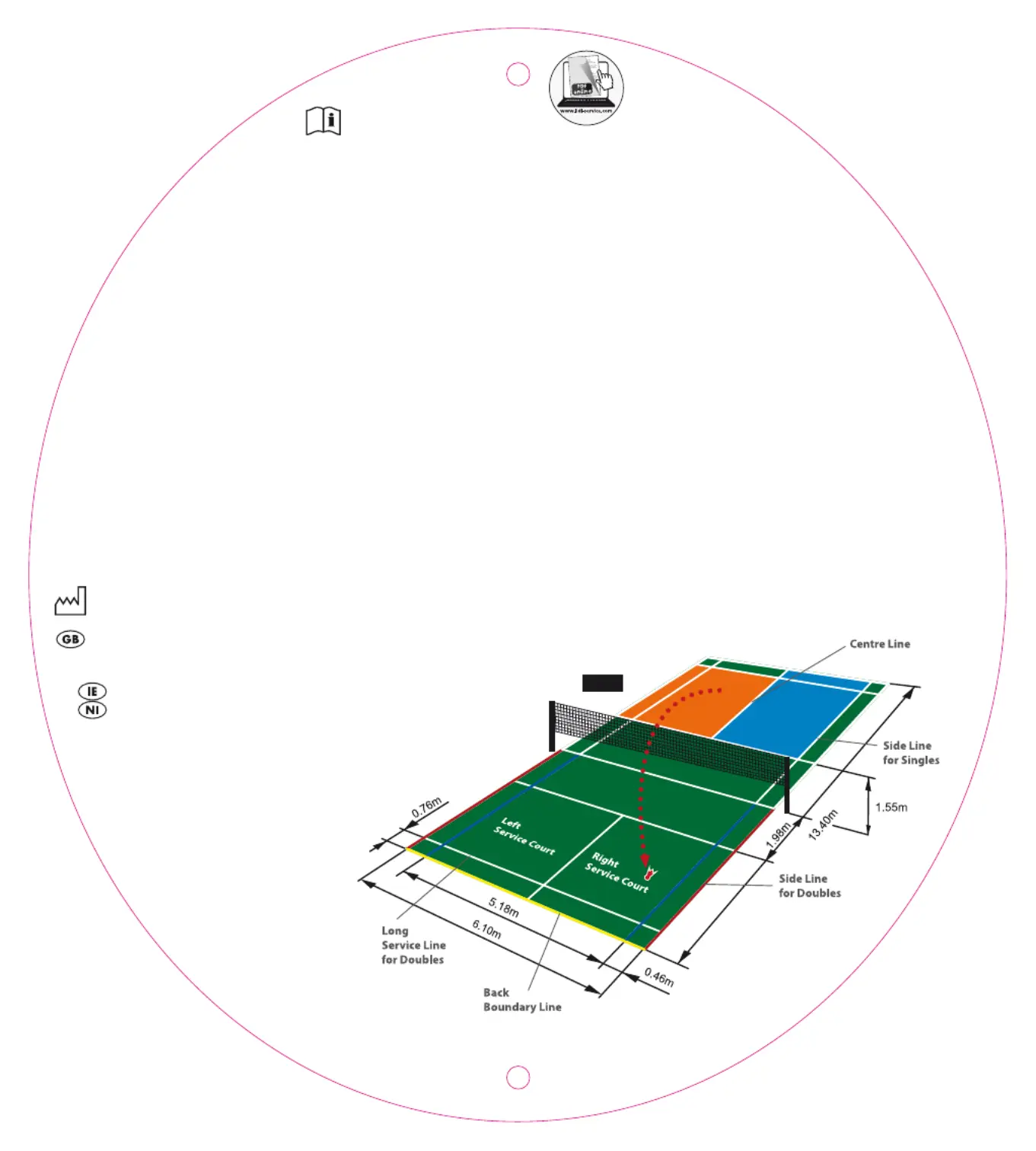 Fig. 1 shows the current permitted dimensions of a badminton court. The current badminton rules can be found in relevant specialised literature.