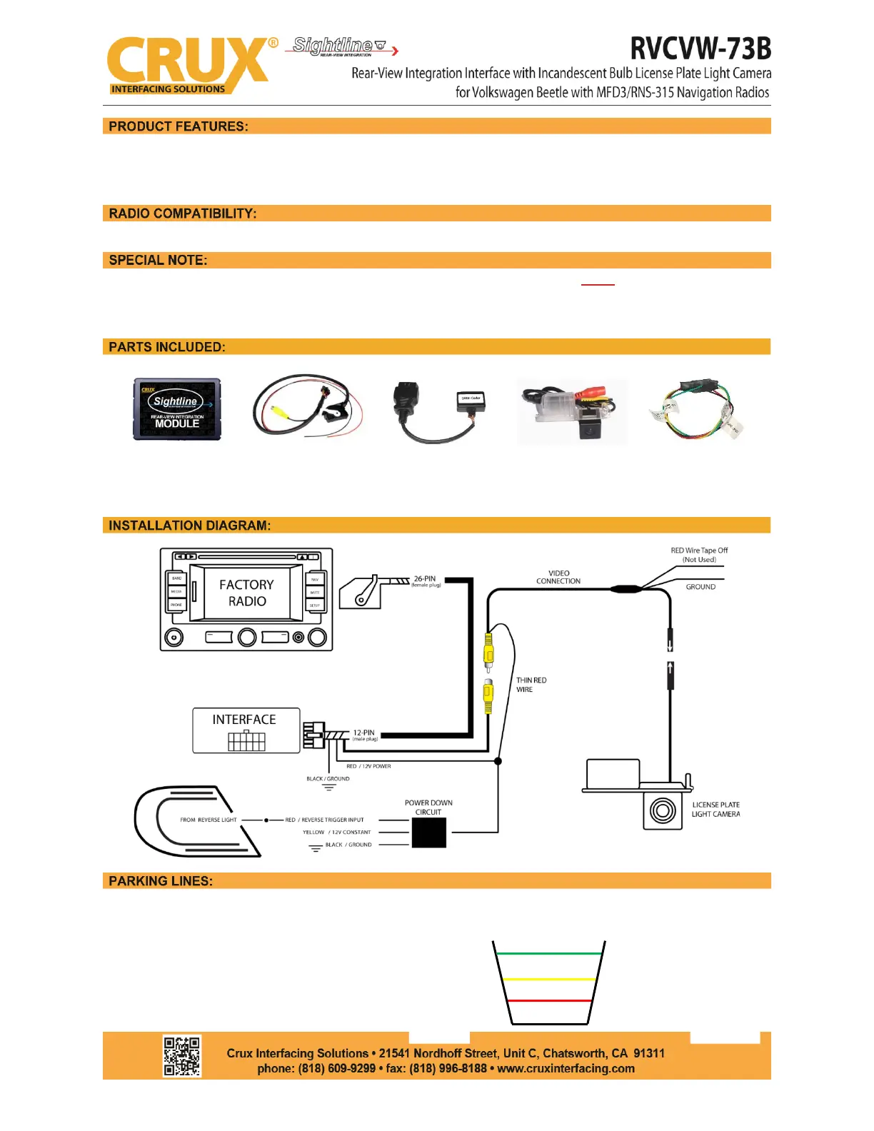 Les nedenfor 📖 manual på norsk for CRUX RVCVW-73B (2 sider) i kategorien reversert kamera. Denne guiden var nyttig for 2 personer og ble vurdert med 4.8 stjerner i gjennomsnitt av 1.5 brukere