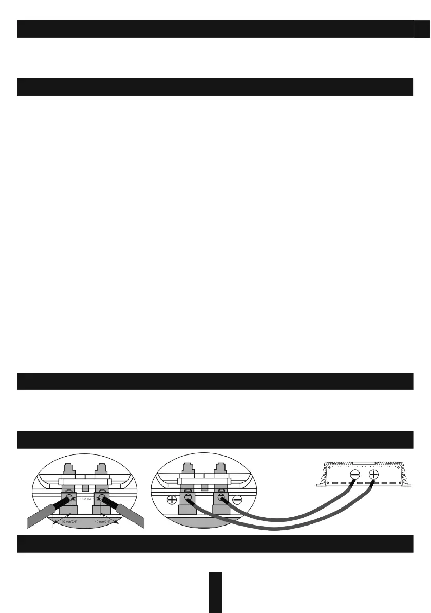 10. The diameter of the speaker cables must be selected in accordance with the length and applied power.