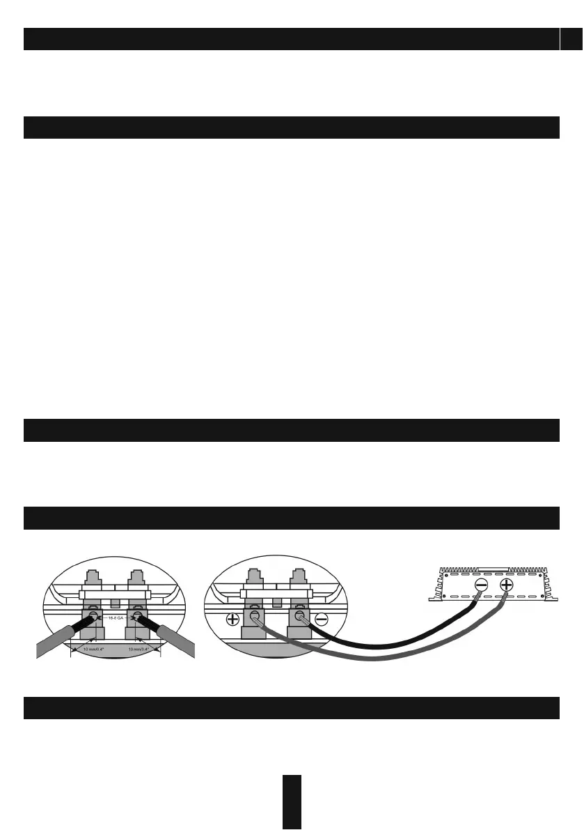 10. The diameter of the speaker cables must be selected in accordance with the length and applied power.