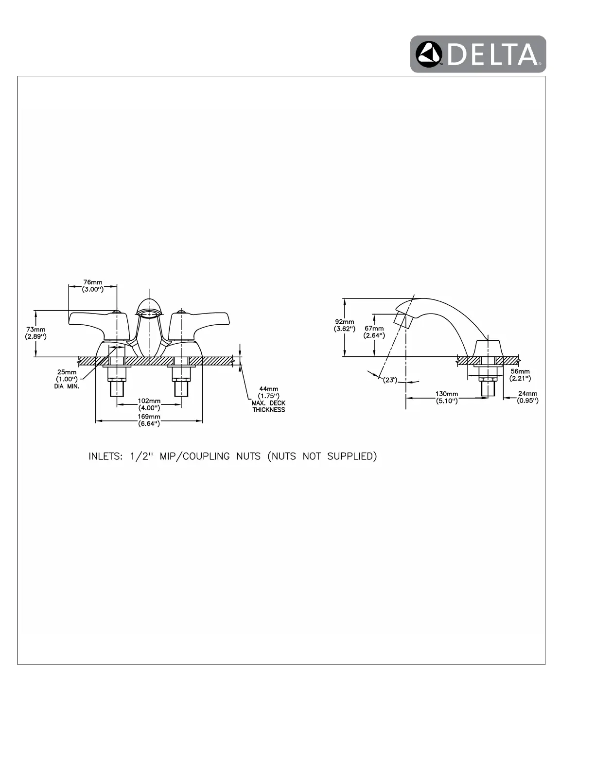 Delta reserves the right (1) to make changes to specifications and materials, and (2) to change or discontinue models, both without notice or obligation. Dimensions are for reference.