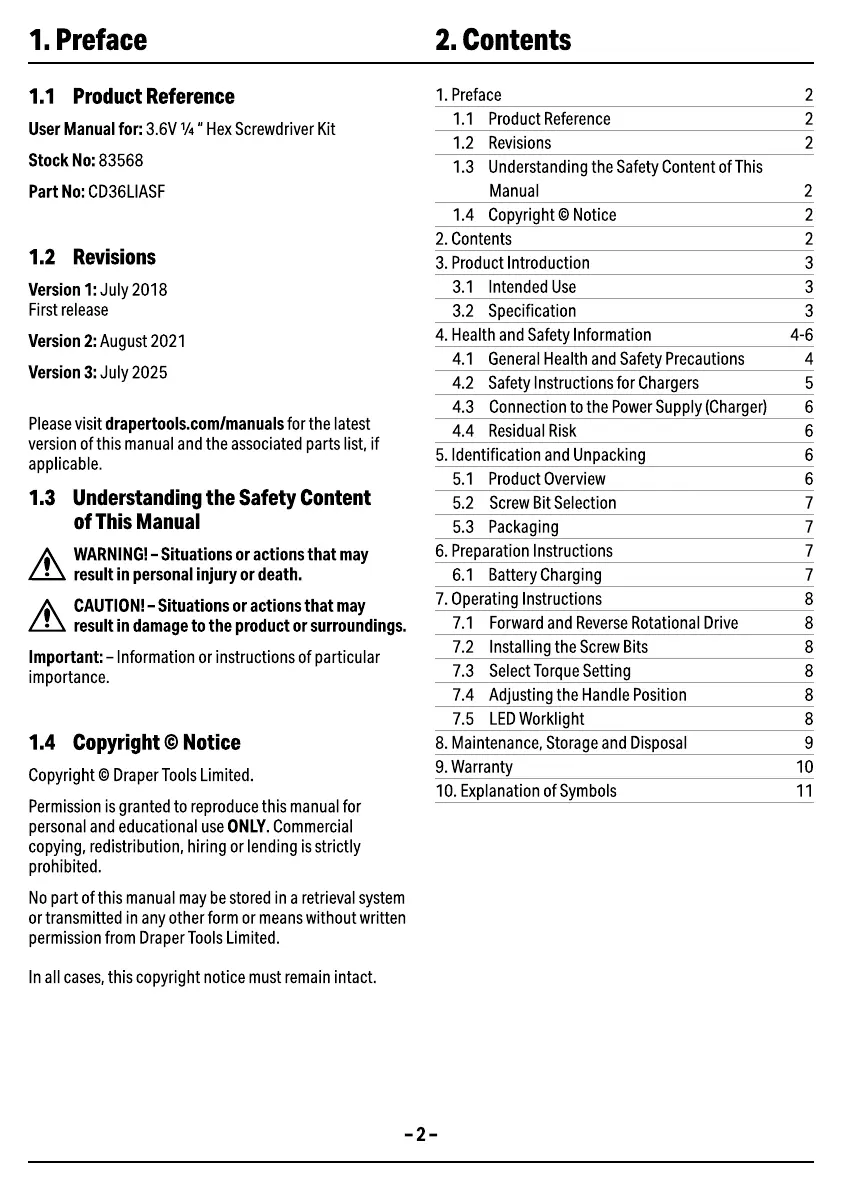 Draper 83568 Bruksanvisning