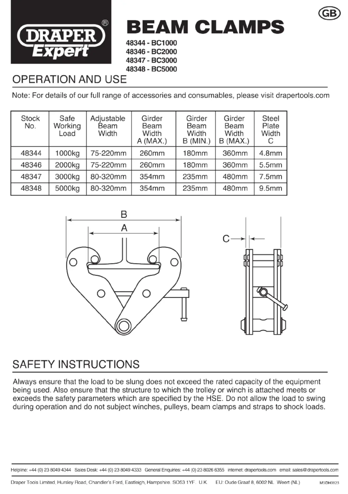 Draper Expert 48346 Bruksanvisning