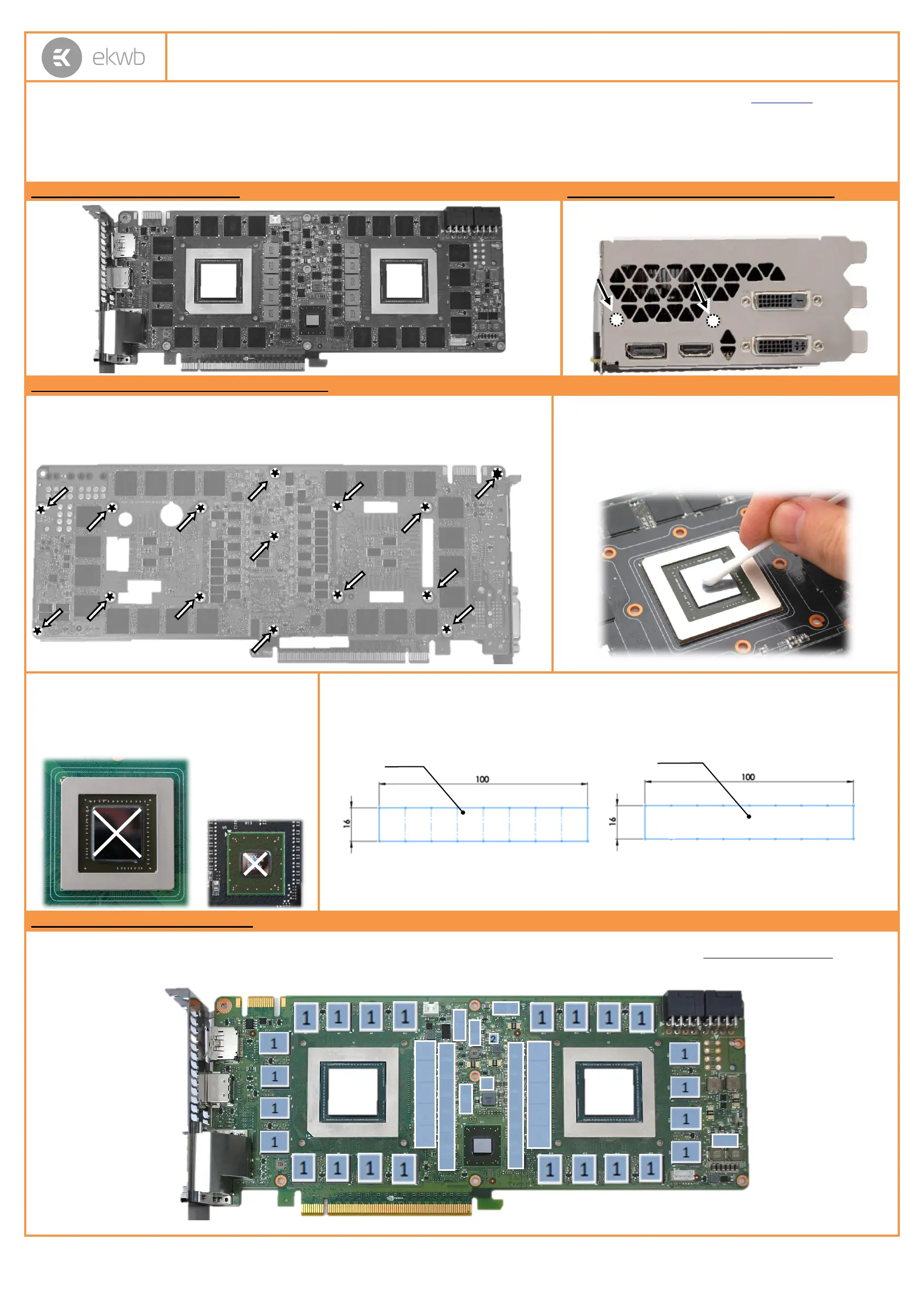 1. PLACING THERMAL PADS ON PCB. Place thermal pads on chips so that numbers on chips match size of thermal pads. EKWB made sure users have more than