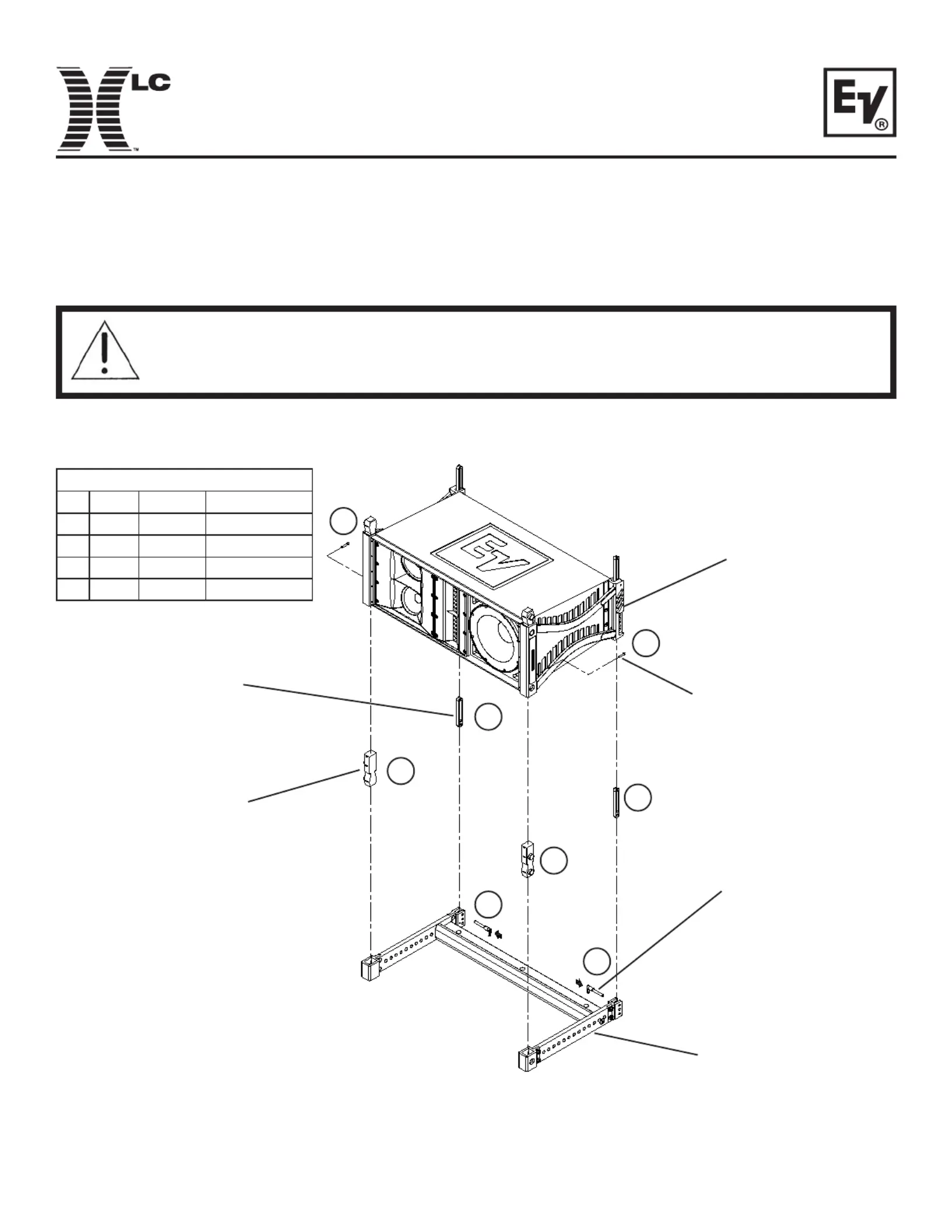When using the Bottom Grid Kit never exceed the rigging rating of the XLC loudspeaker systems used