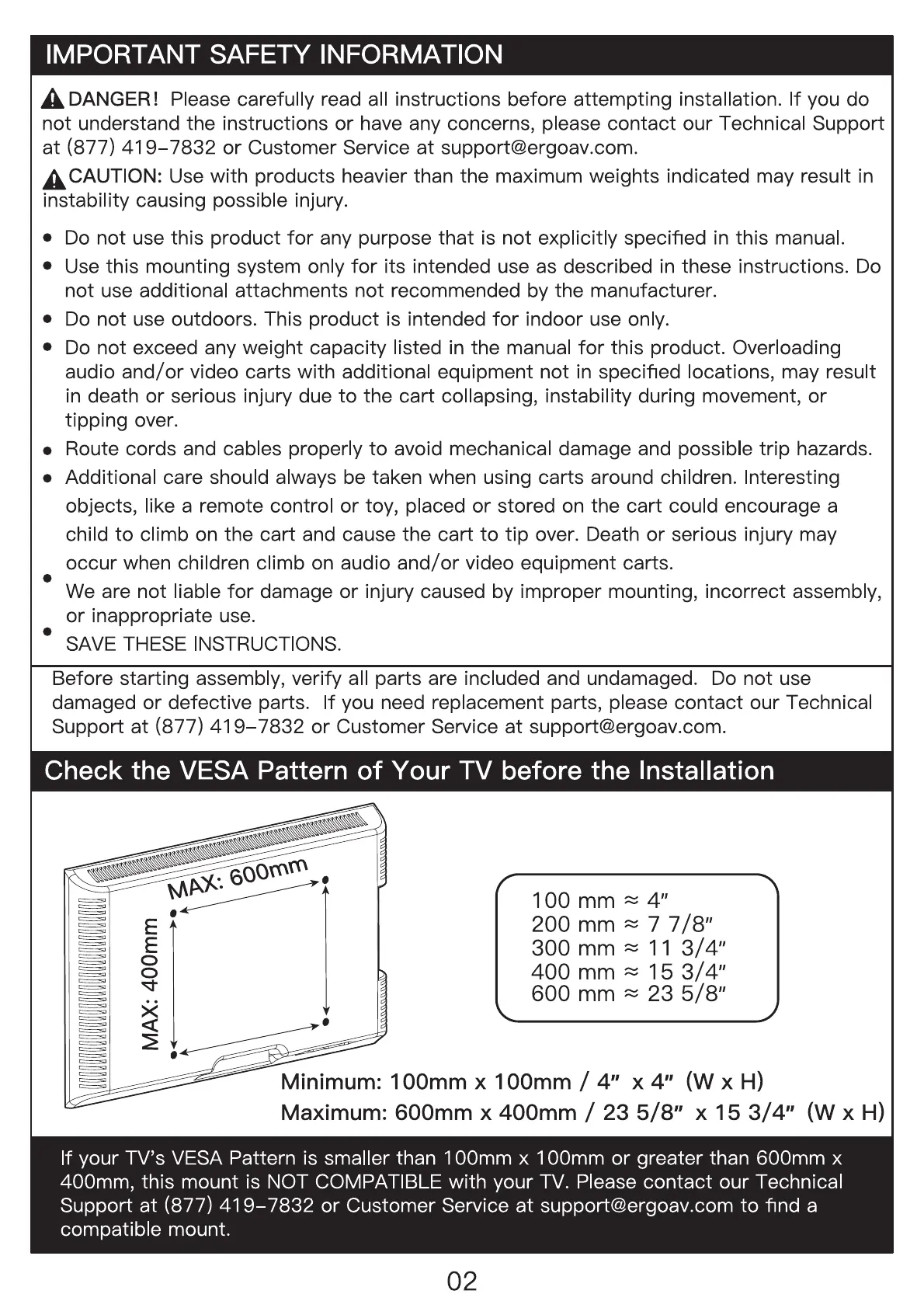 7832 or Customer Service at support@ergoav.com.