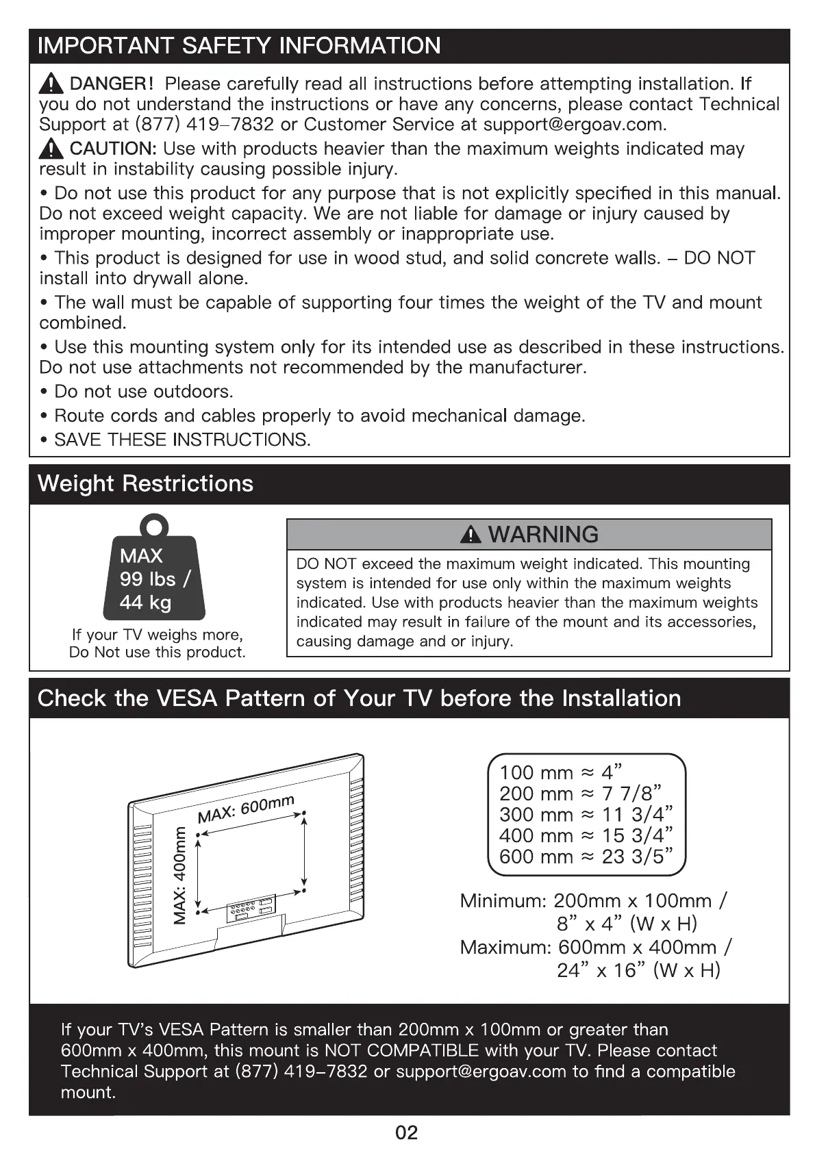 NOT exceed the maximum weight indicated. This mounting