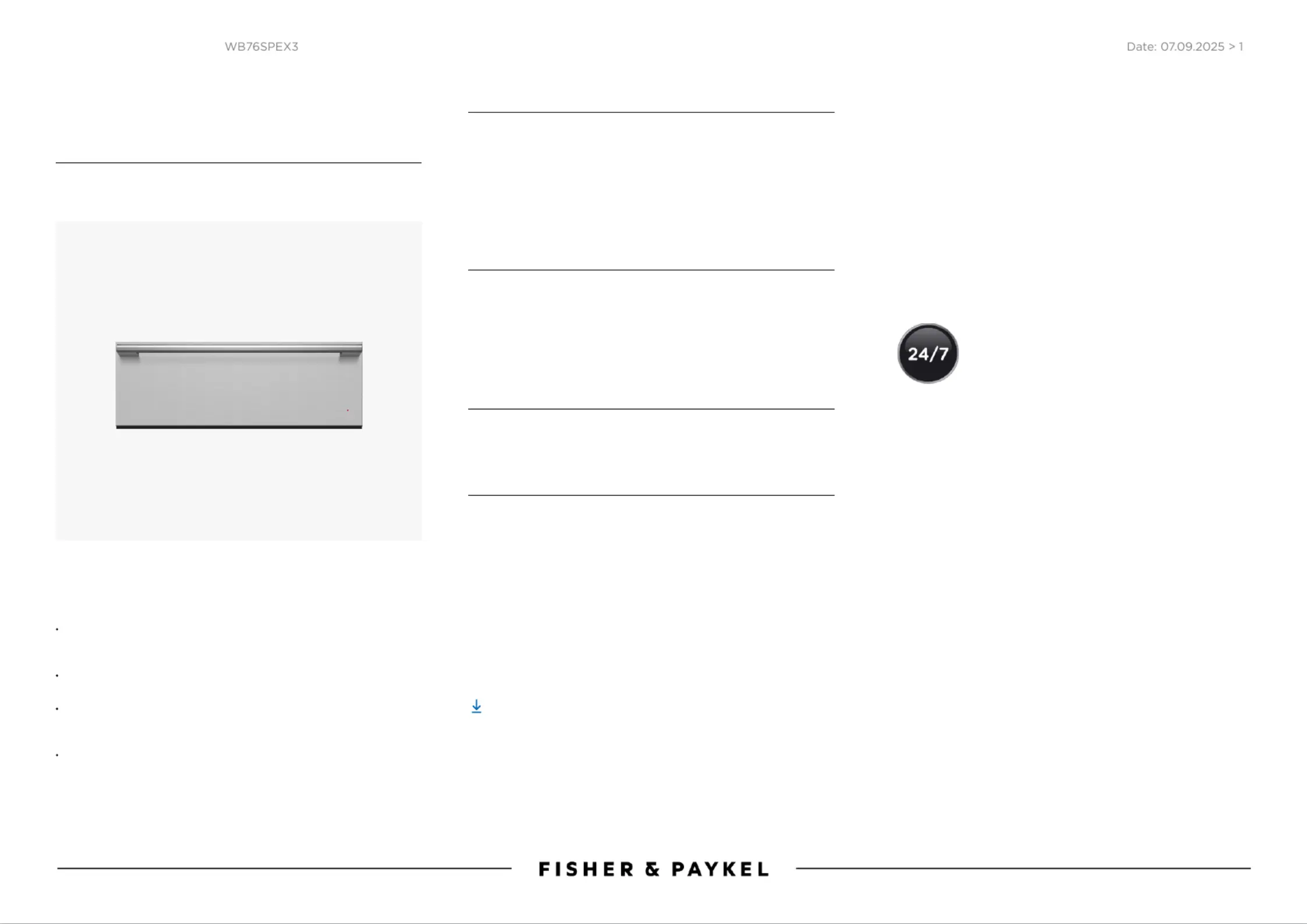 Fisher Paykel WB76SPEX3 Bruksanvisning