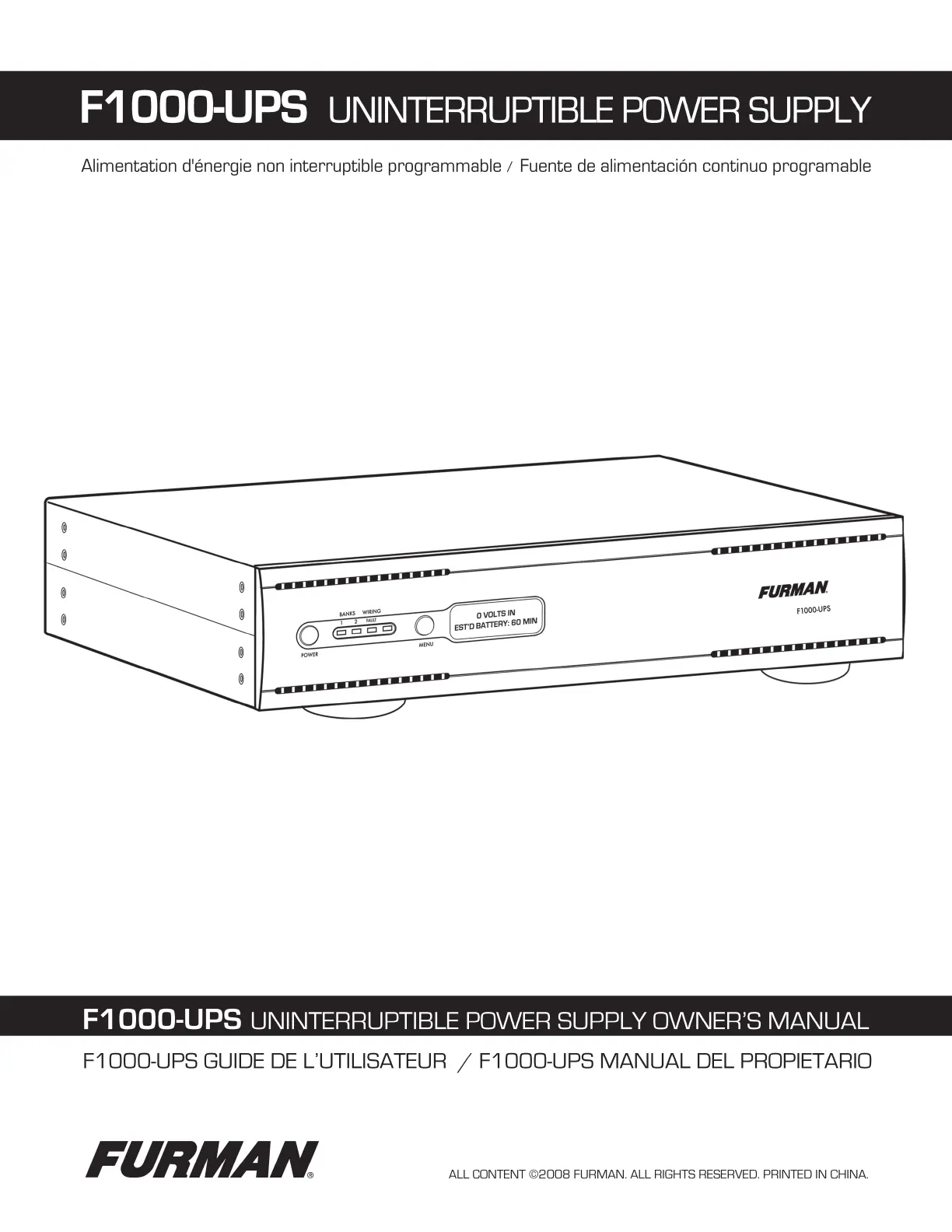 Furman F1000-UPS Bruksanvisning