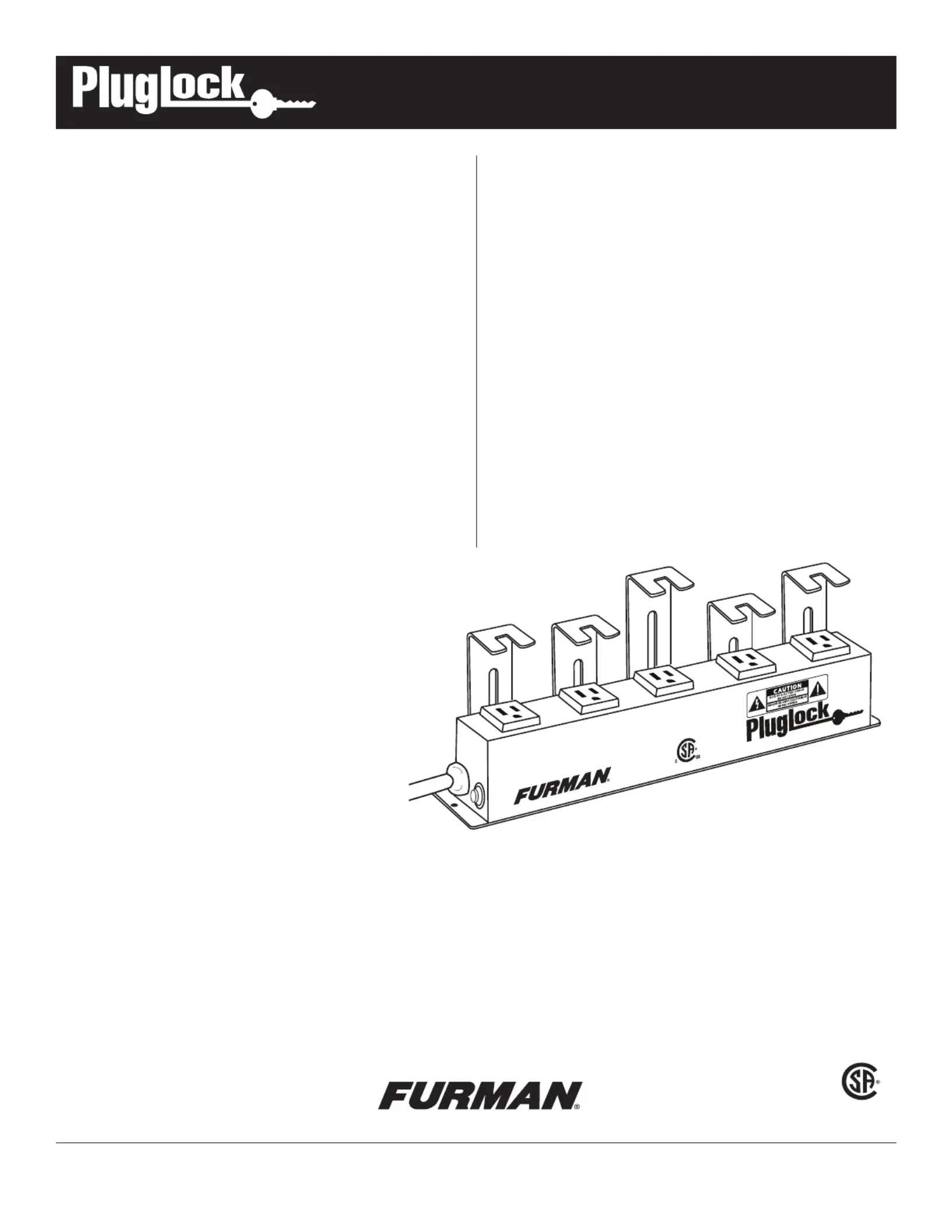 Furman PLUGLOCK Bruksanvisning