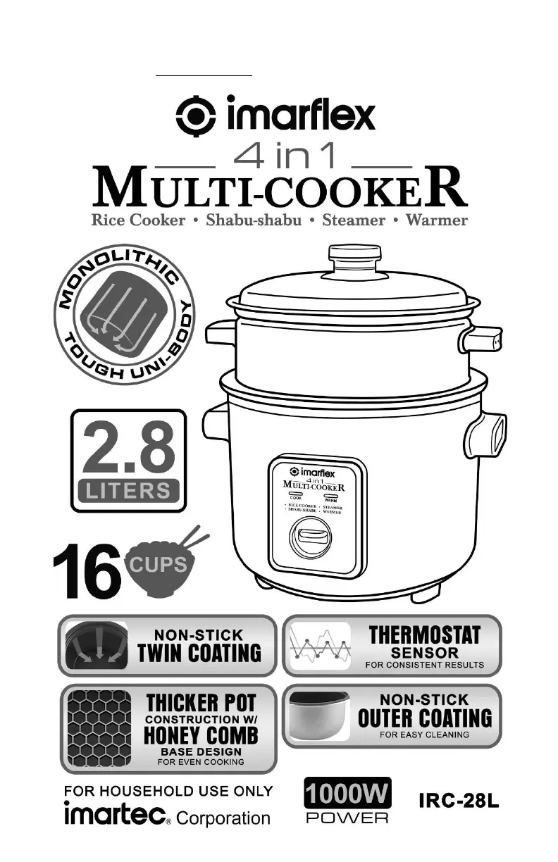 Les nedenfor 📖 manual på norsk for Imarflex IRC-28L (4 sider) i kategorien Multikoker. Denne guiden var nyttig for 2 personer og ble vurdert med 4.7 stjerner i gjennomsnitt av 1.5 brukere