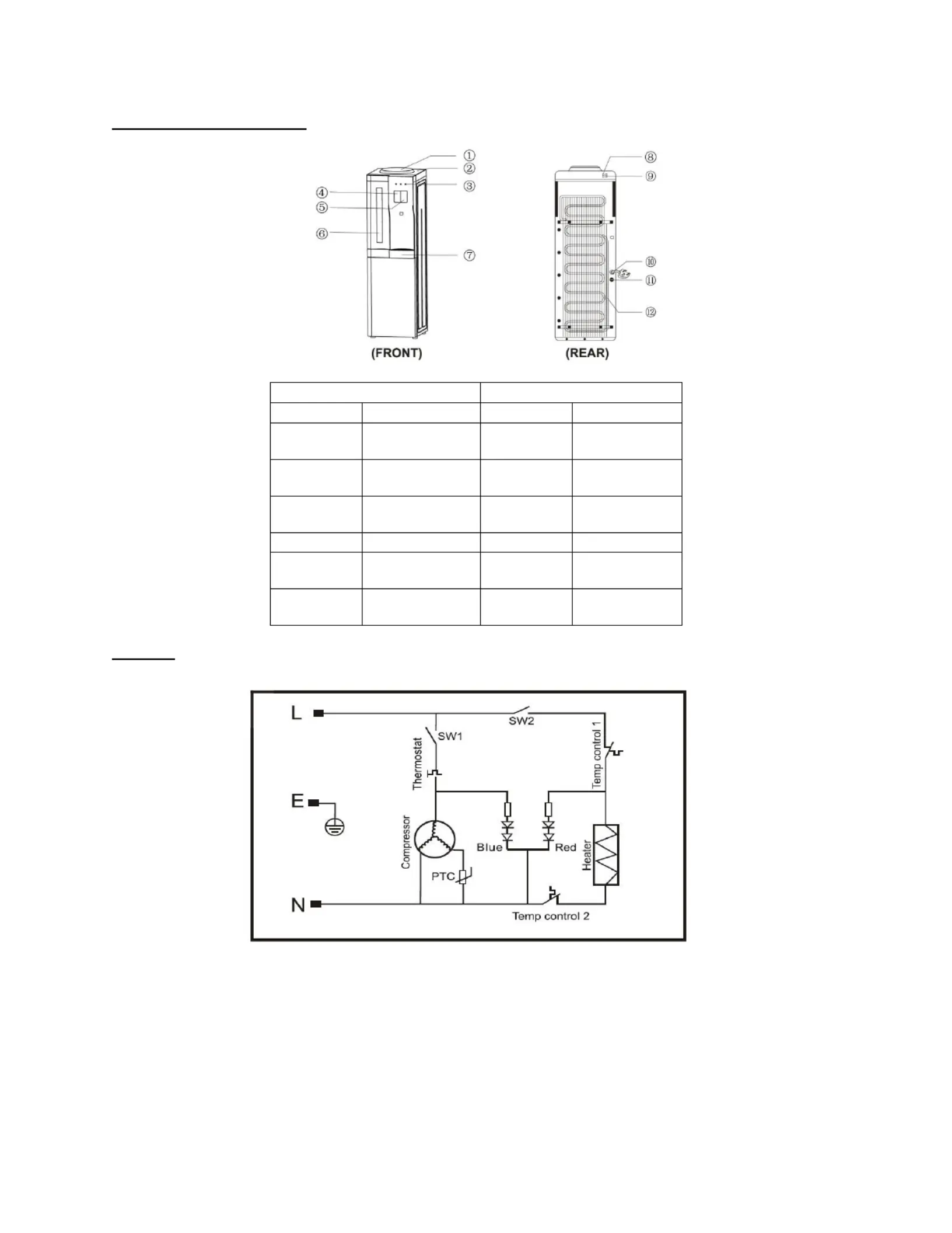 9. Keep the water dispenser in a dry and cool place and avoid direct sunlight. Rearward of the