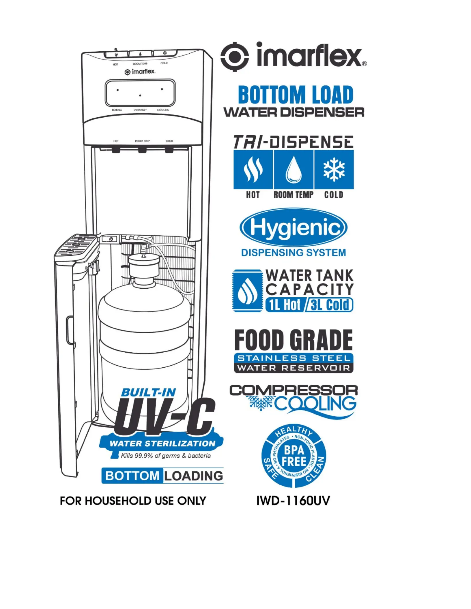 Les nedenfor 📖 manual på norsk for Imarflex IWD-1160UV (4 sider) i kategorien Vanndispenser. Denne guiden var nyttig for 24 personer og ble vurdert med 4.3 stjerner i gjennomsnitt av 12.5 brukere