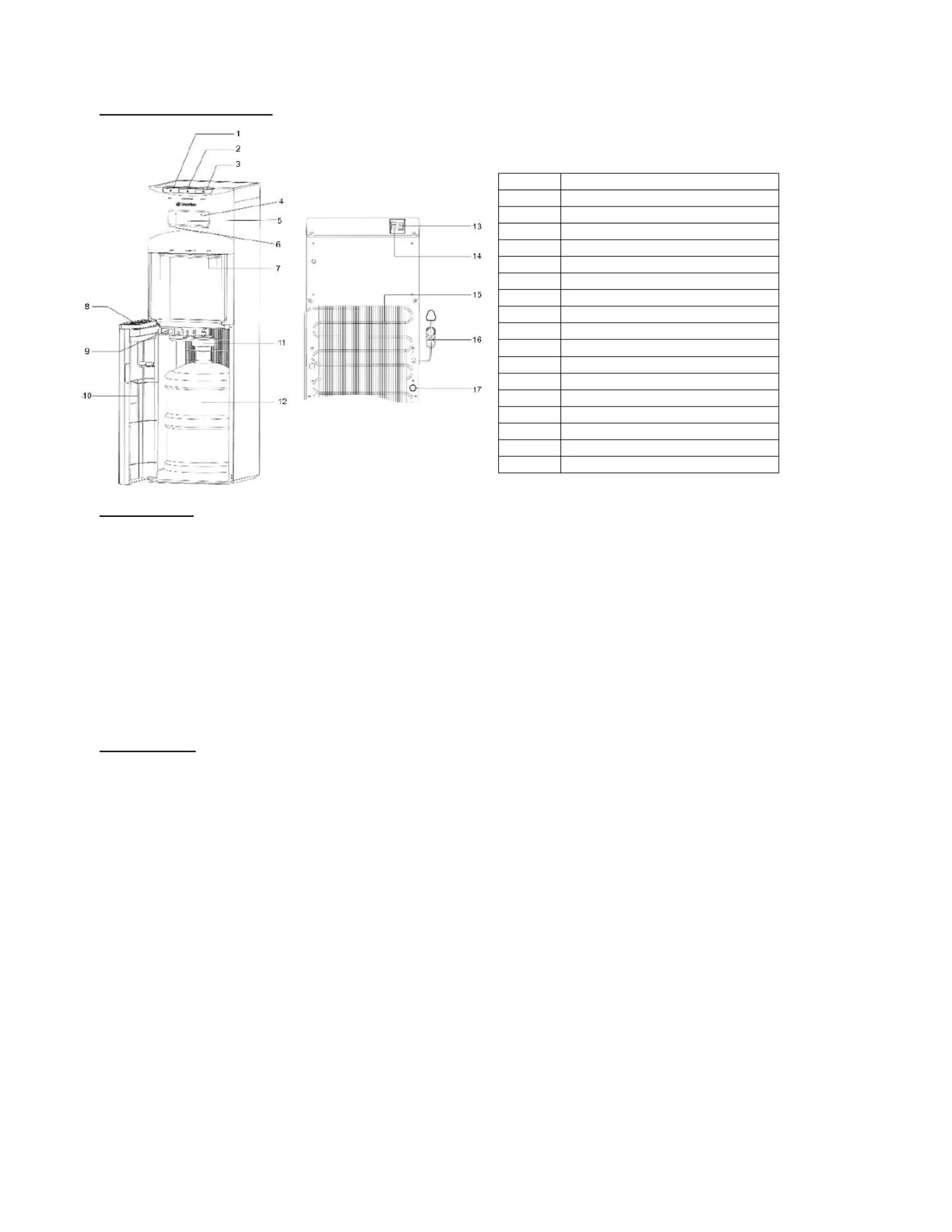 9. Keep the water dispenser in a dry and cool place and avoid direct sunlight. Rearward of the