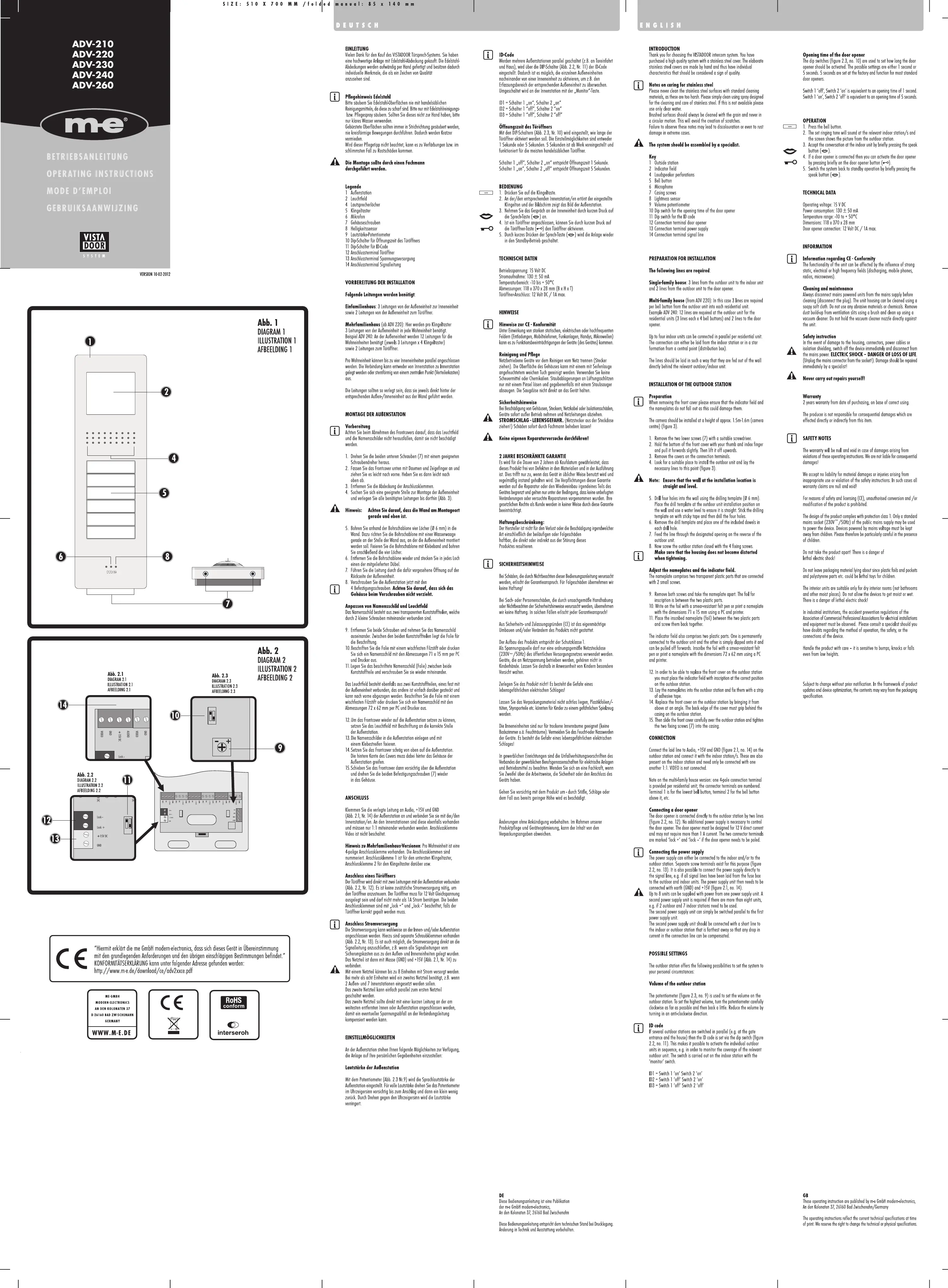 Les nedenfor 📖 manual på norsk for M-e ADV-230 (2 sider) i kategorien Intercomsystem. Denne guiden var nyttig for 4 personer og ble vurdert med 3.8 stjerner i gjennomsnitt av 2.5 brukere