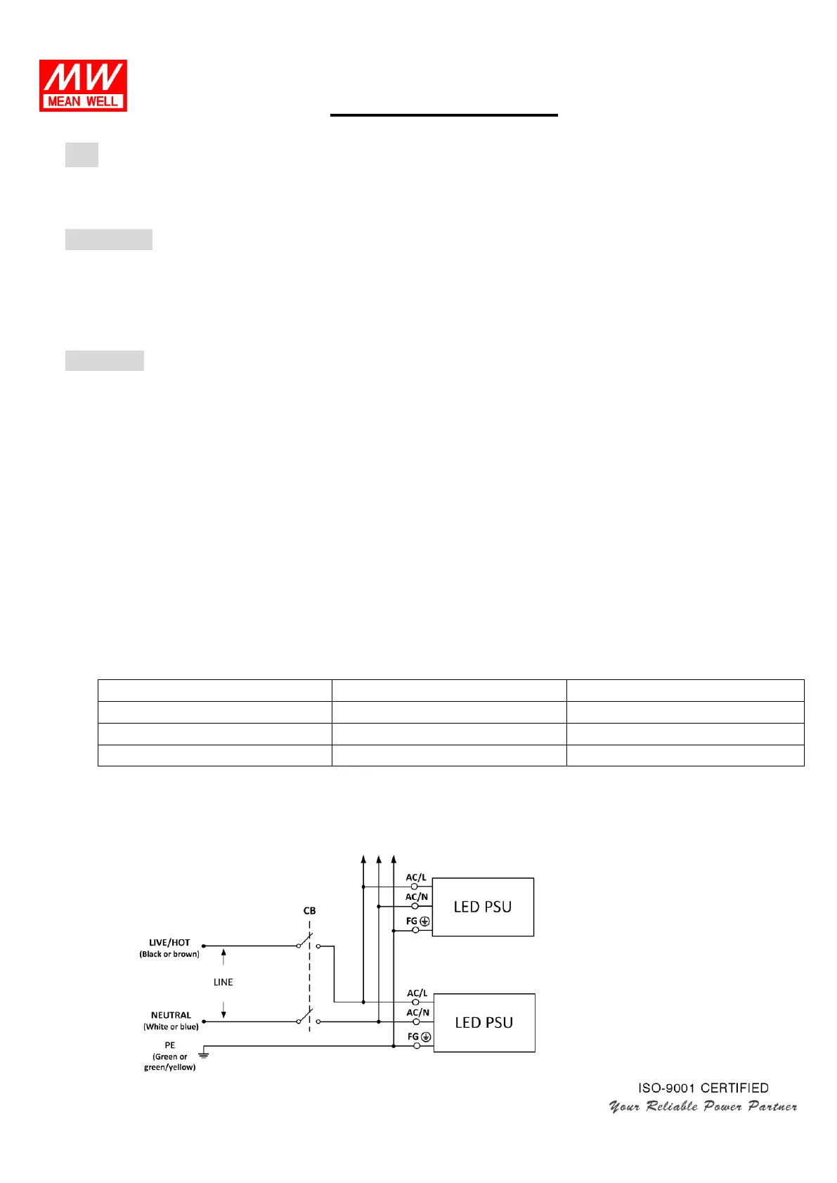 (a)Connect the FG wire (green or green/yellow) of the LED power supply to PE (green or green/yellow), this
