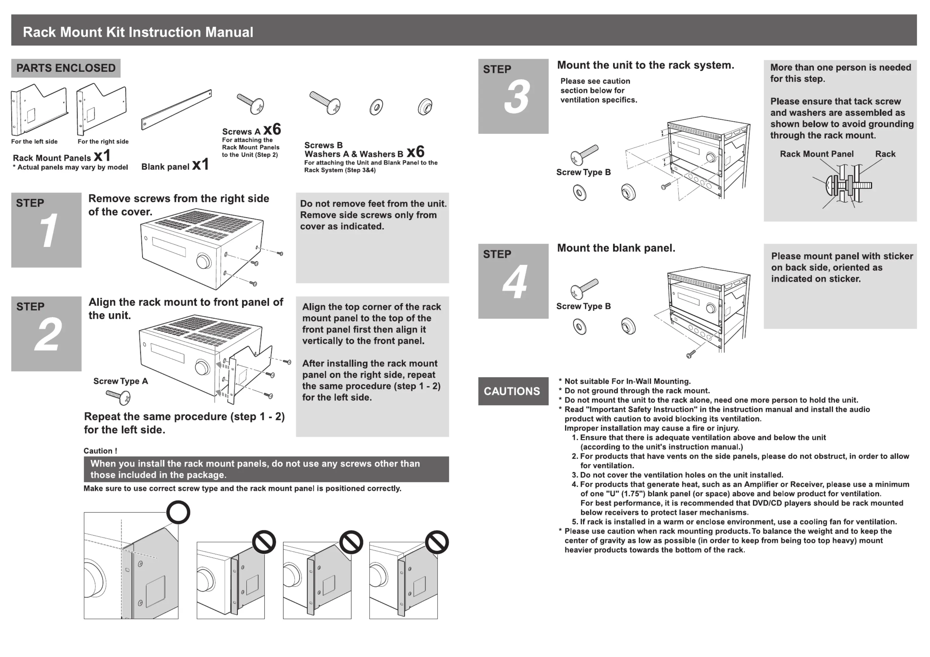 * Screws A are smaller