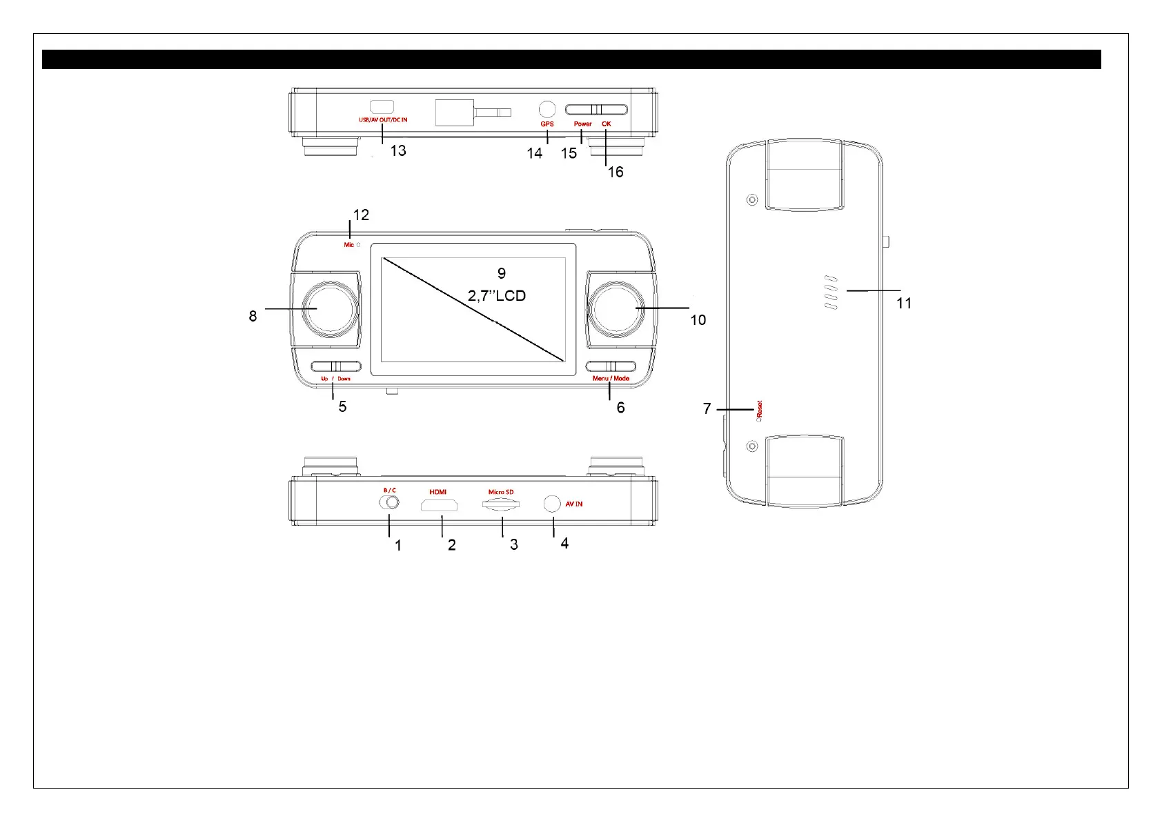 5. Up/Down 13. USB/AV output; power input