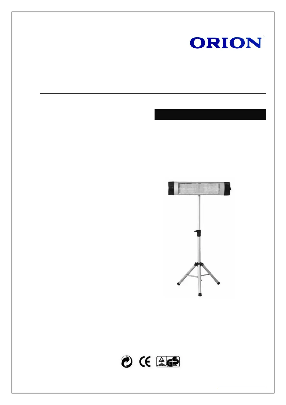 MANY THANKS FOR BUYING ORION QUARTZ HEATER!