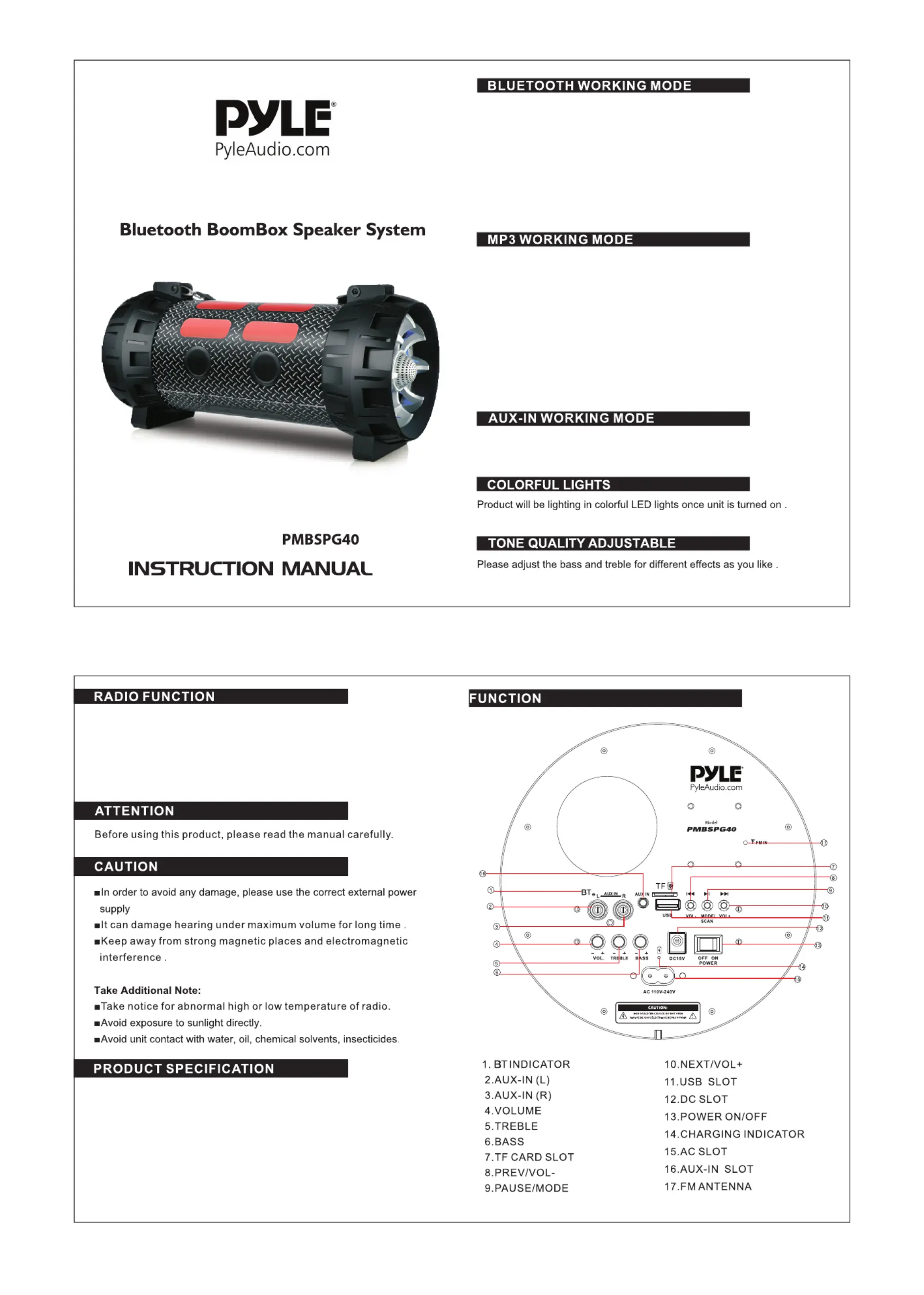 Pyle PMBSPG40 Bruksanvisning