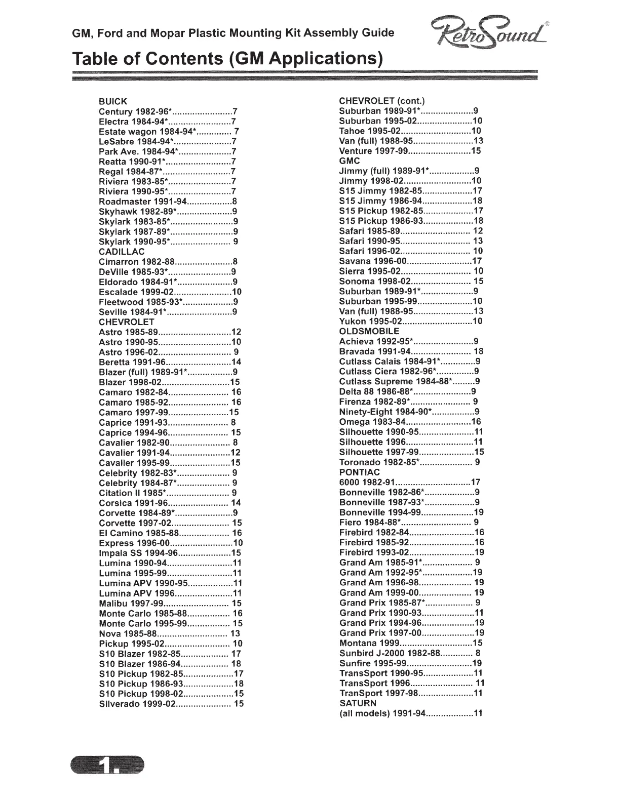 Fiero 1984-88* ............................ 9