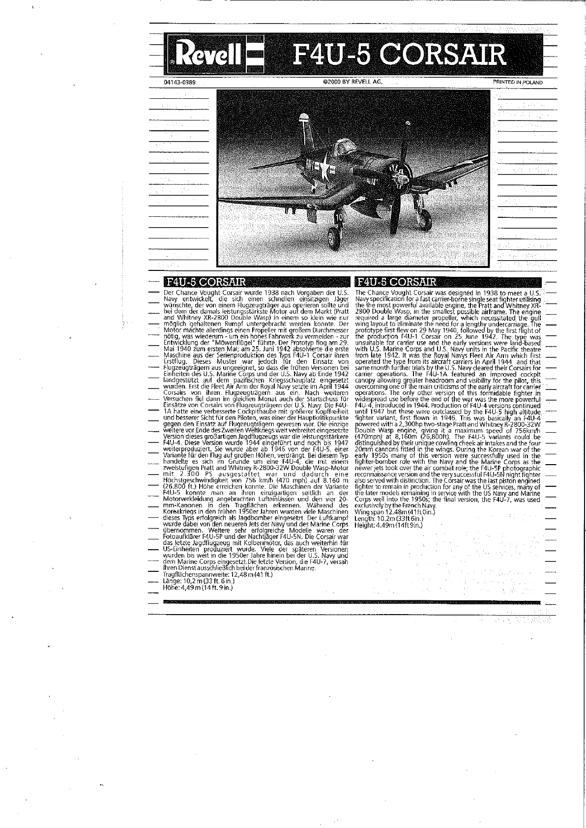 Revell F4U-5 Corsair Bruksanvisning