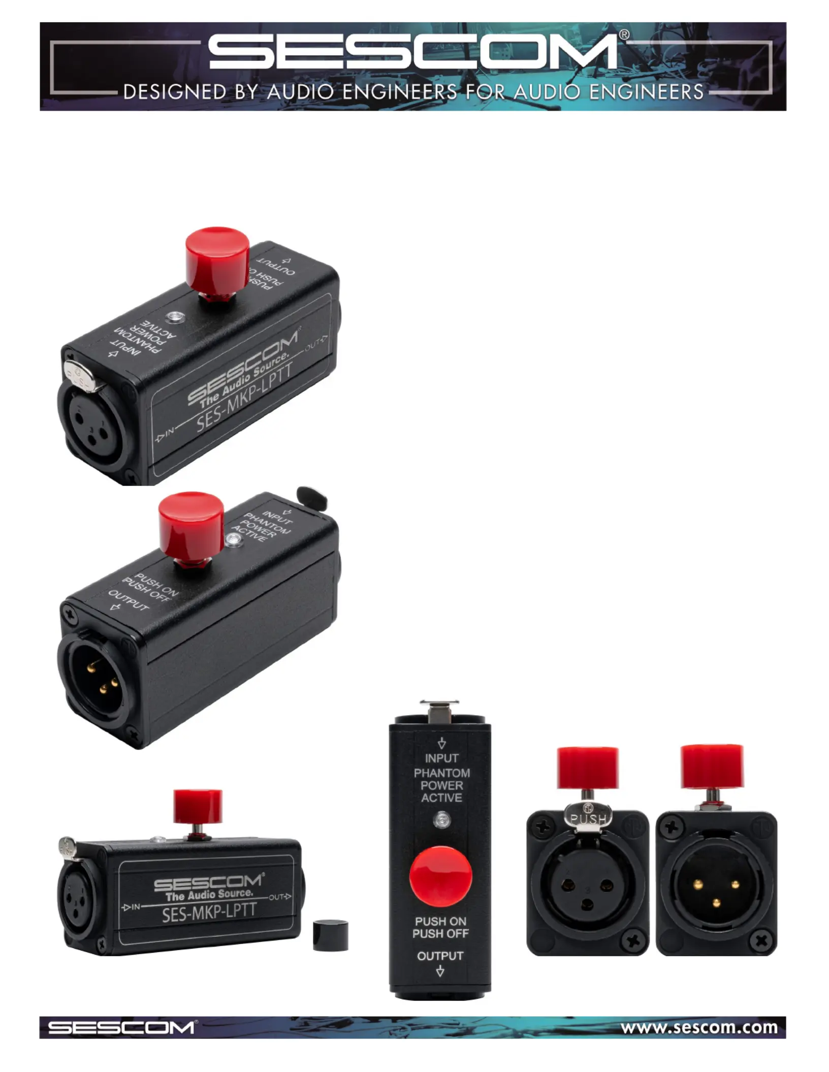 SES- -MKP LPTT Inline Rugged XLR Push Talk Latching Button -To-