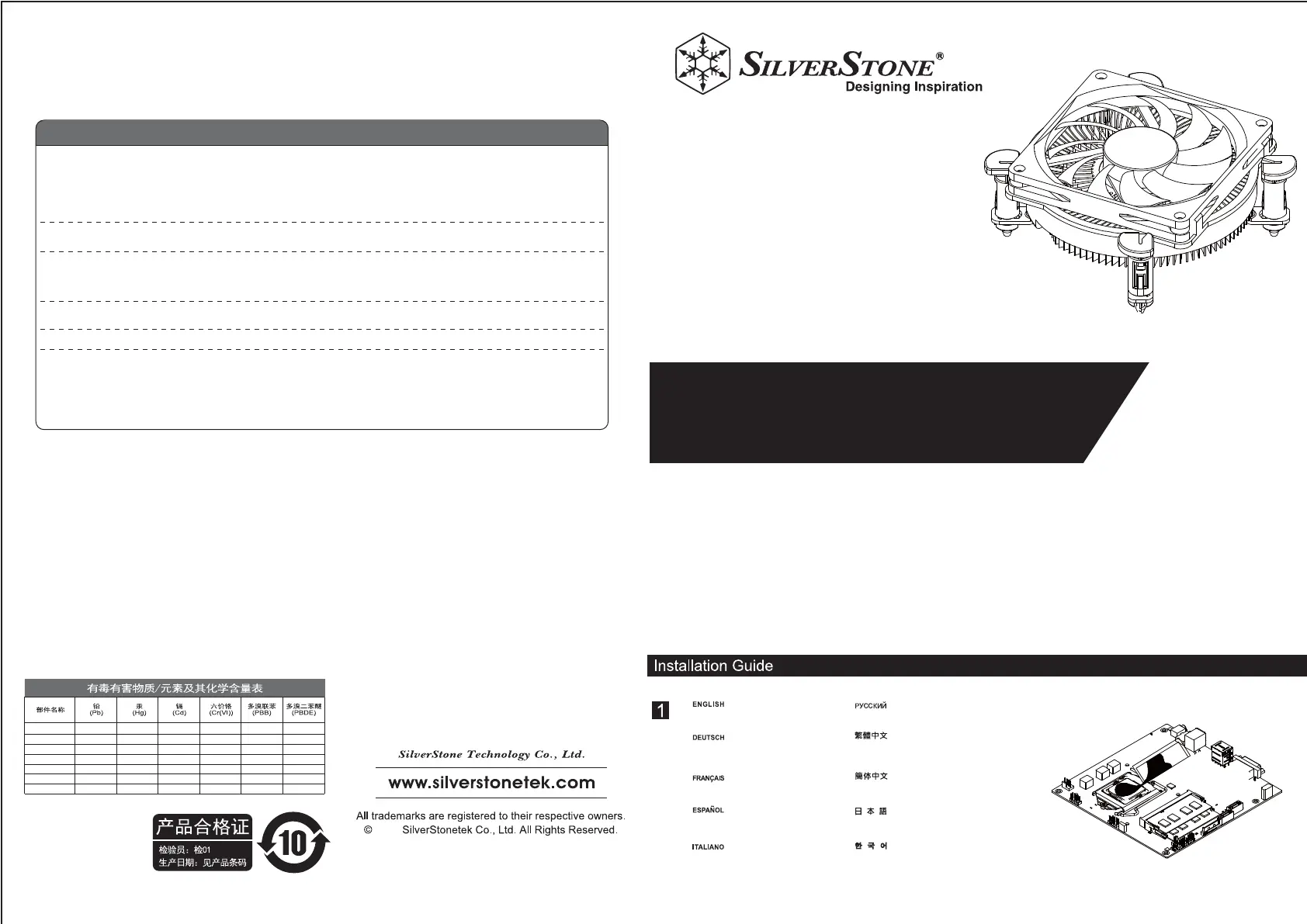 SilverStone Technology Co., Ltd. 12F No. 168 Jiankang Rd., Zhonghe Dist., New Taipei City 235 Taiwan R.O.C. + 886-2-8228-1238