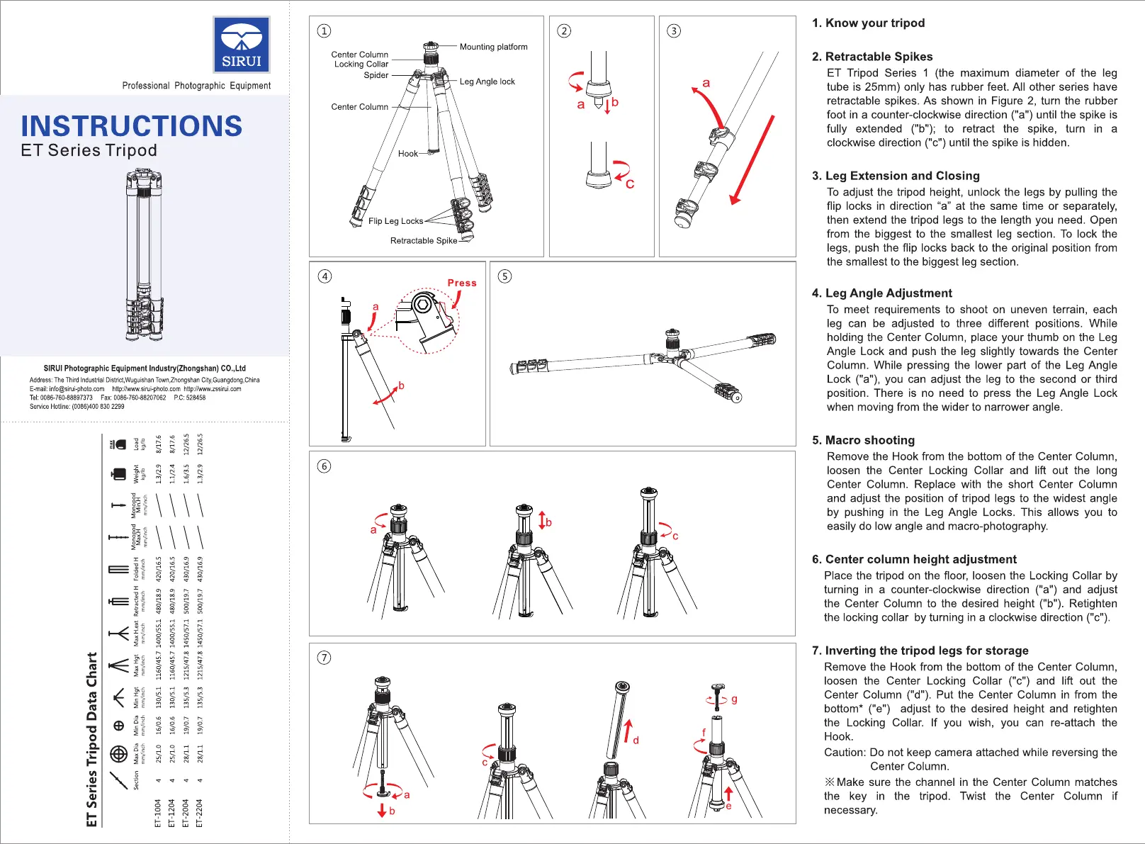 Sirui ET-2004 Bruksanvisning