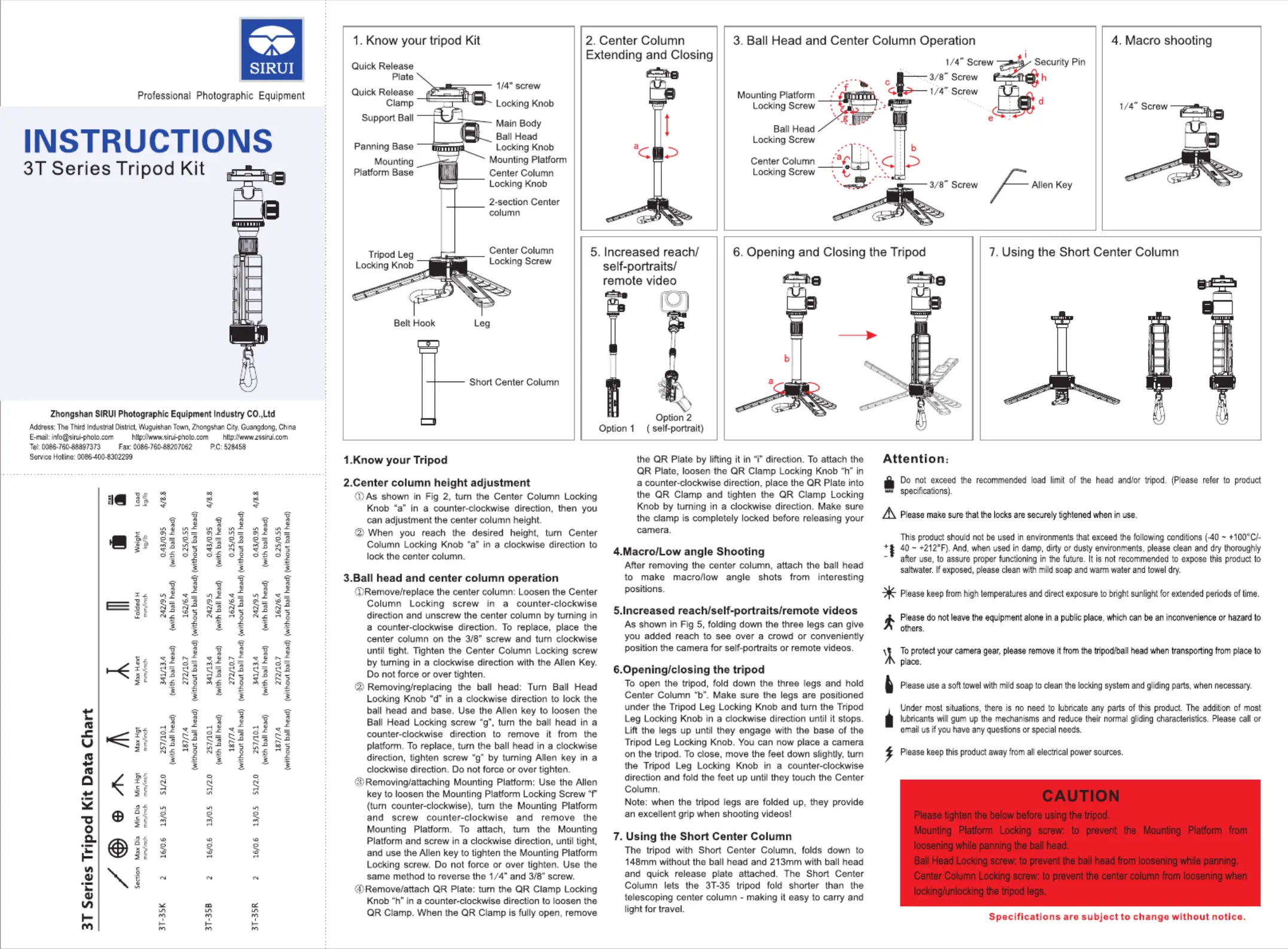Les nedenfor 📖 manual på norsk for Sirui TableTop 3T-35K (1 sider) i kategorien tripod. Denne guiden var nyttig for 4 personer og ble vurdert med 4.7 stjerner i gjennomsnitt av 2.5 brukere