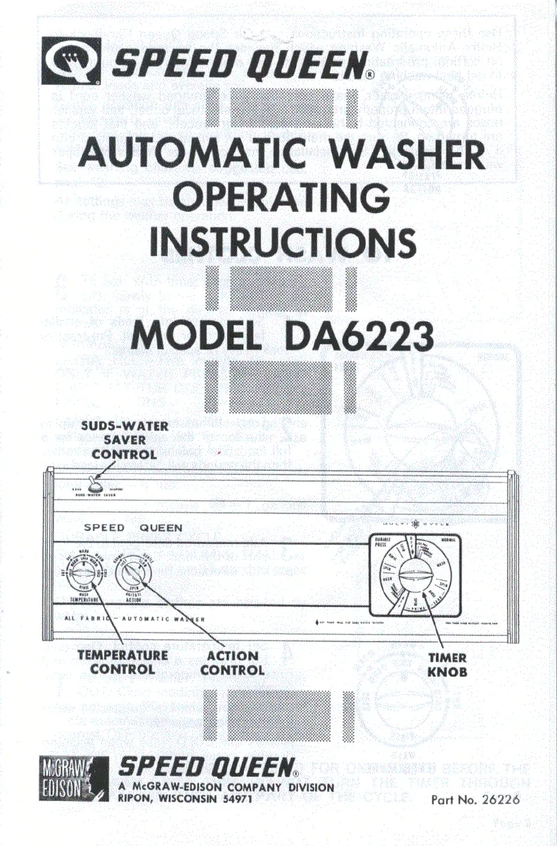 Les nedenfor 📖 manual på norsk for Speed Queen DA6223 (4 sider) i kategorien Vaskemaskin. Denne guiden var nyttig for 3 personer og ble vurdert med 4.3 stjerner i gjennomsnitt av 2 brukere