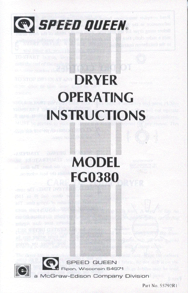 Speed Queen FG0380 Bruksanvisning