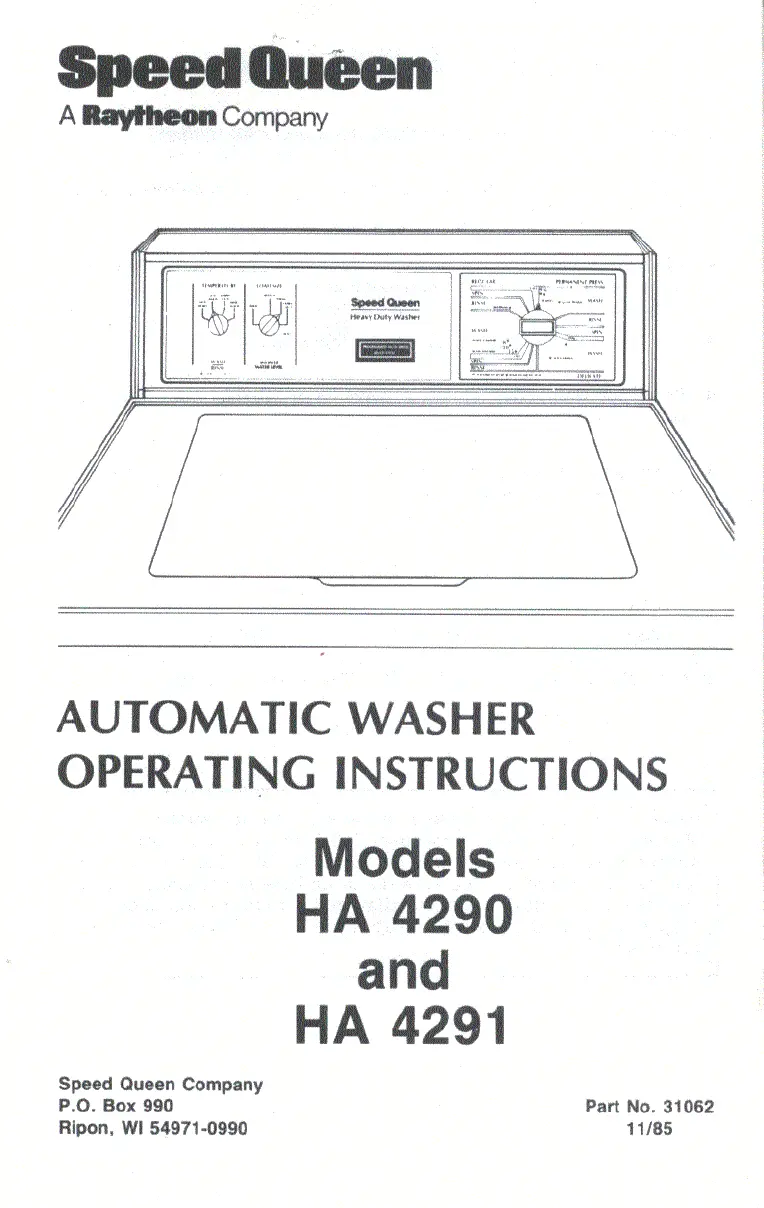 Speed Queen HA4291 Bruksanvisning