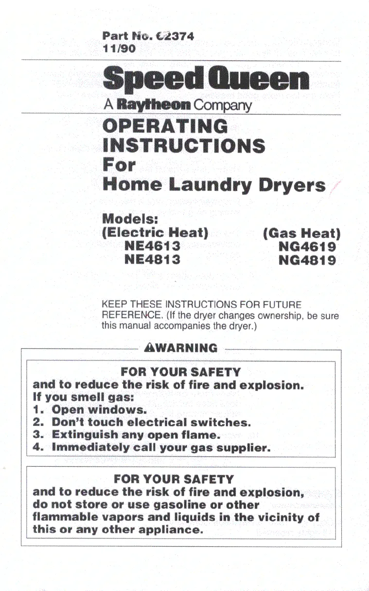 Speed Queen NG4819 Bruksanvisning