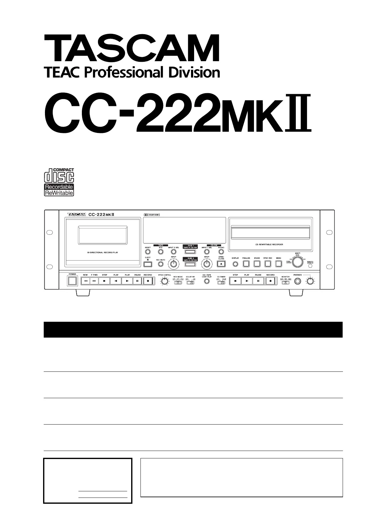 2 TASCAM CC-222MKII Owner’s Manual