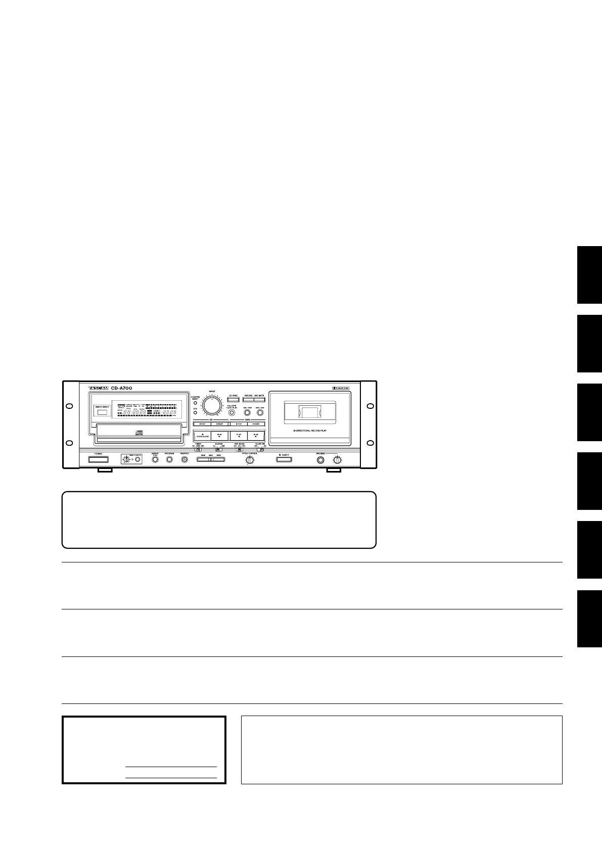 Tascam CD-A700 Bruksanvisning