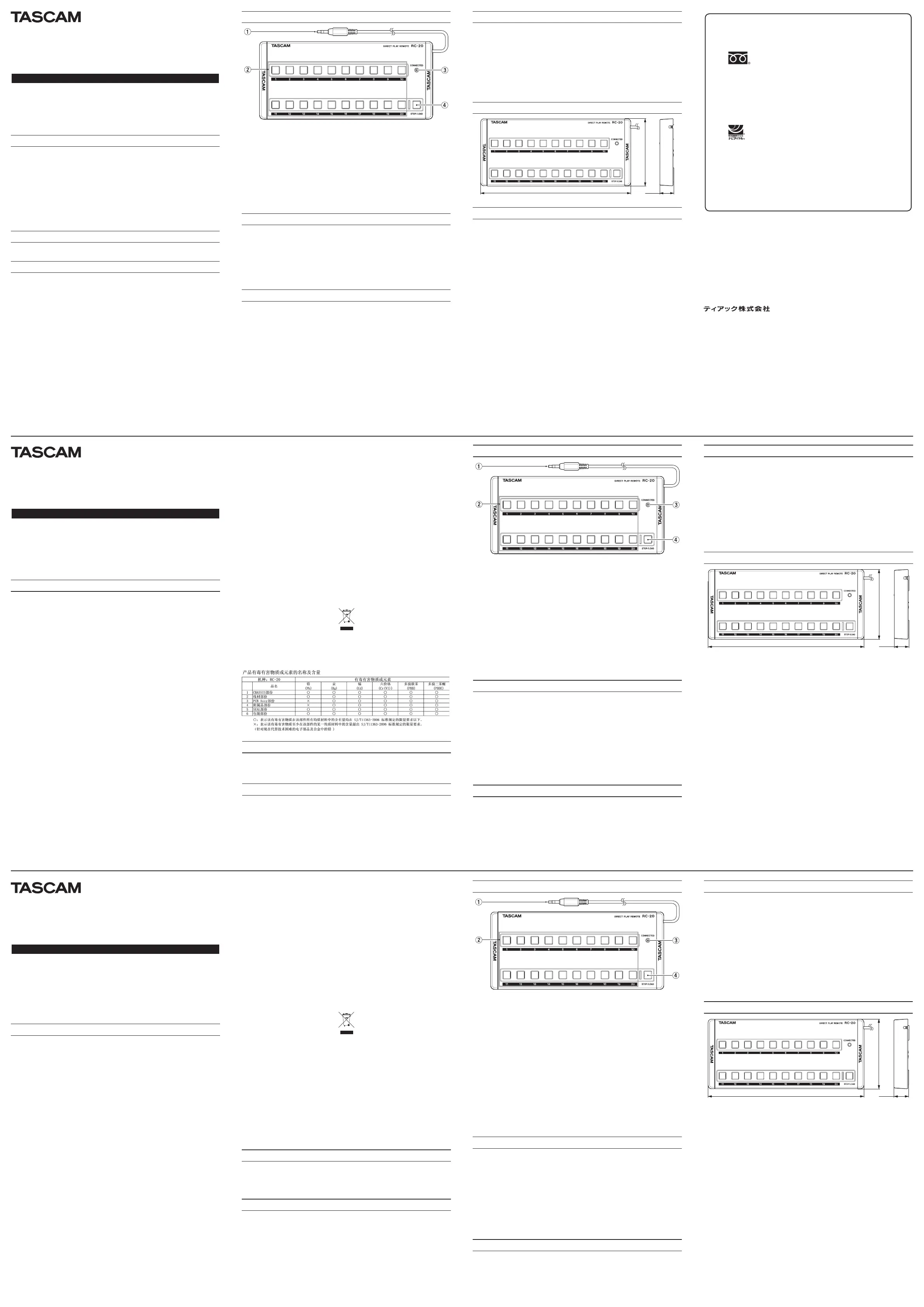Thank you for your purchase of the TASCAM RC-20 Direct Play Remote.