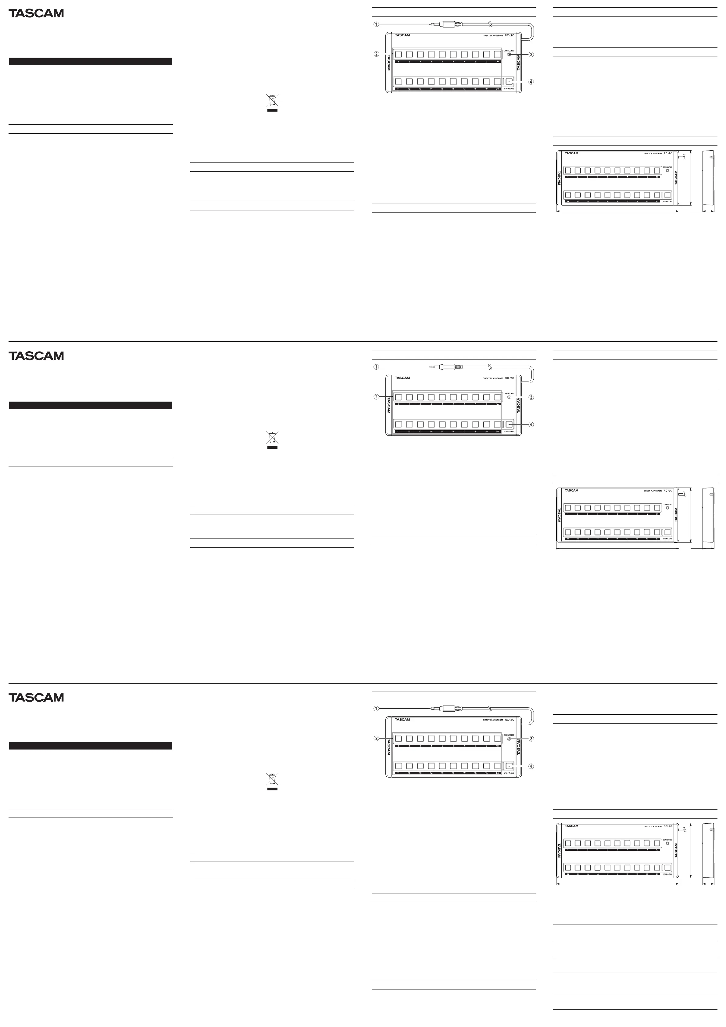 Tascam RC-20 Bruksanvisning