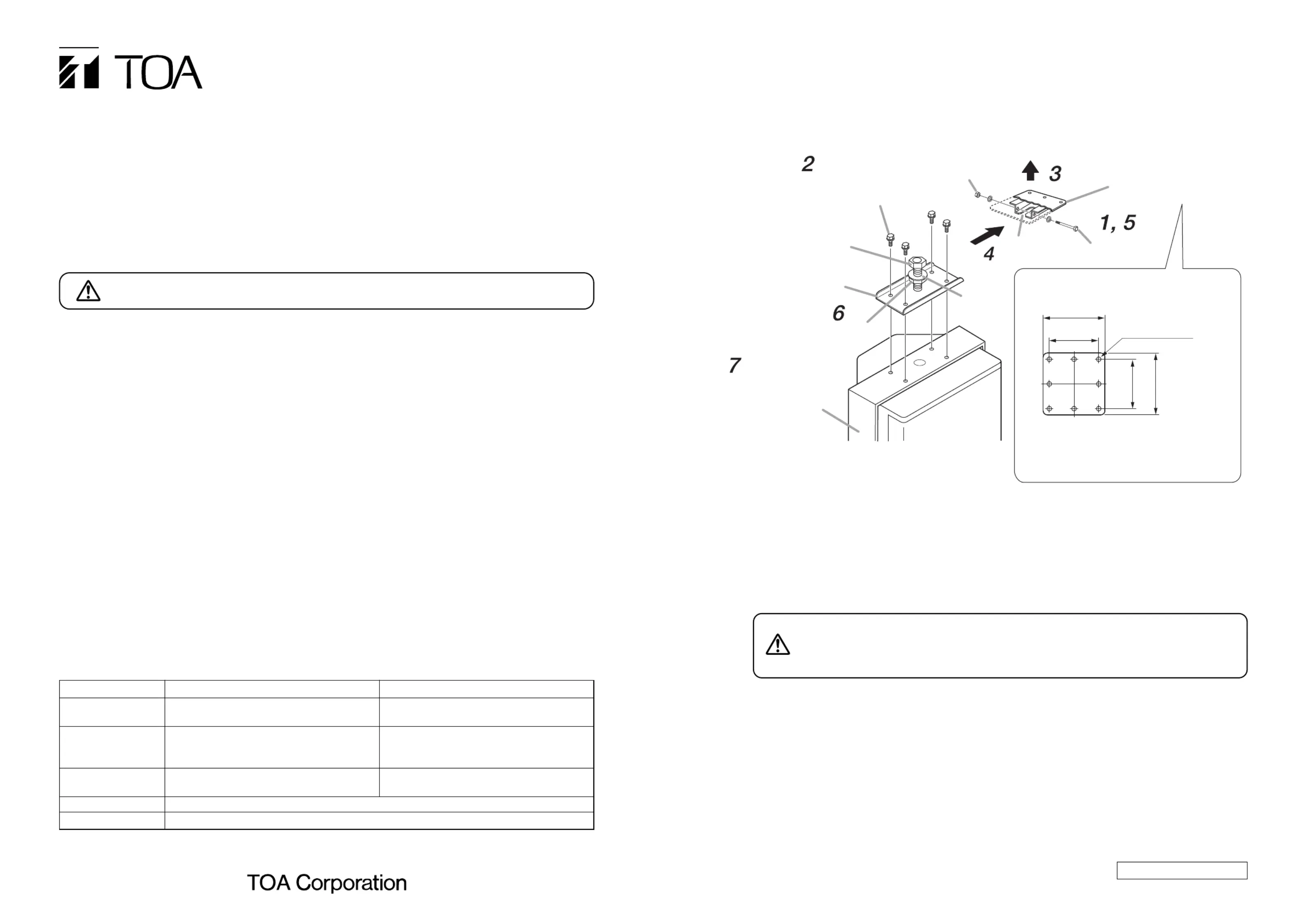 Thank you for purchasing TOA's Ceiling Mount Bracket.