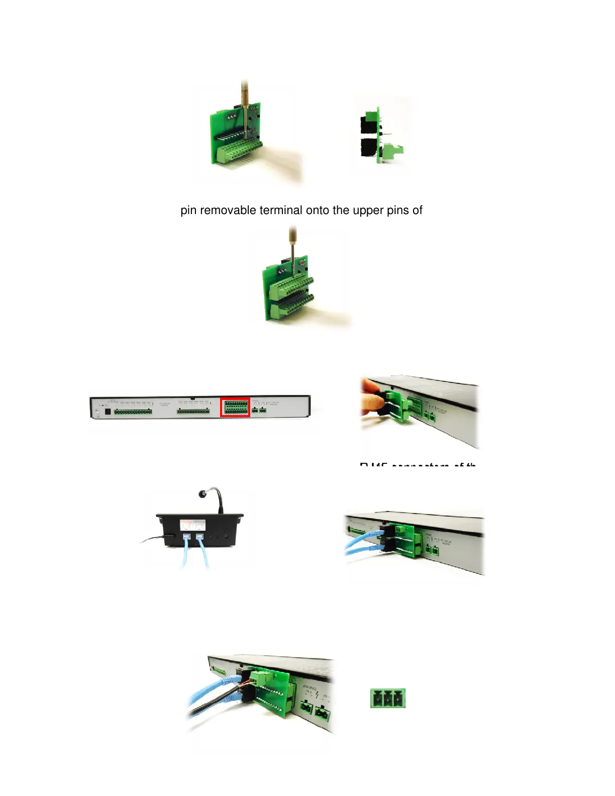 Step5. Wiring the supplied 3pin removable terminal plug, and insert it to the terminal block on the
