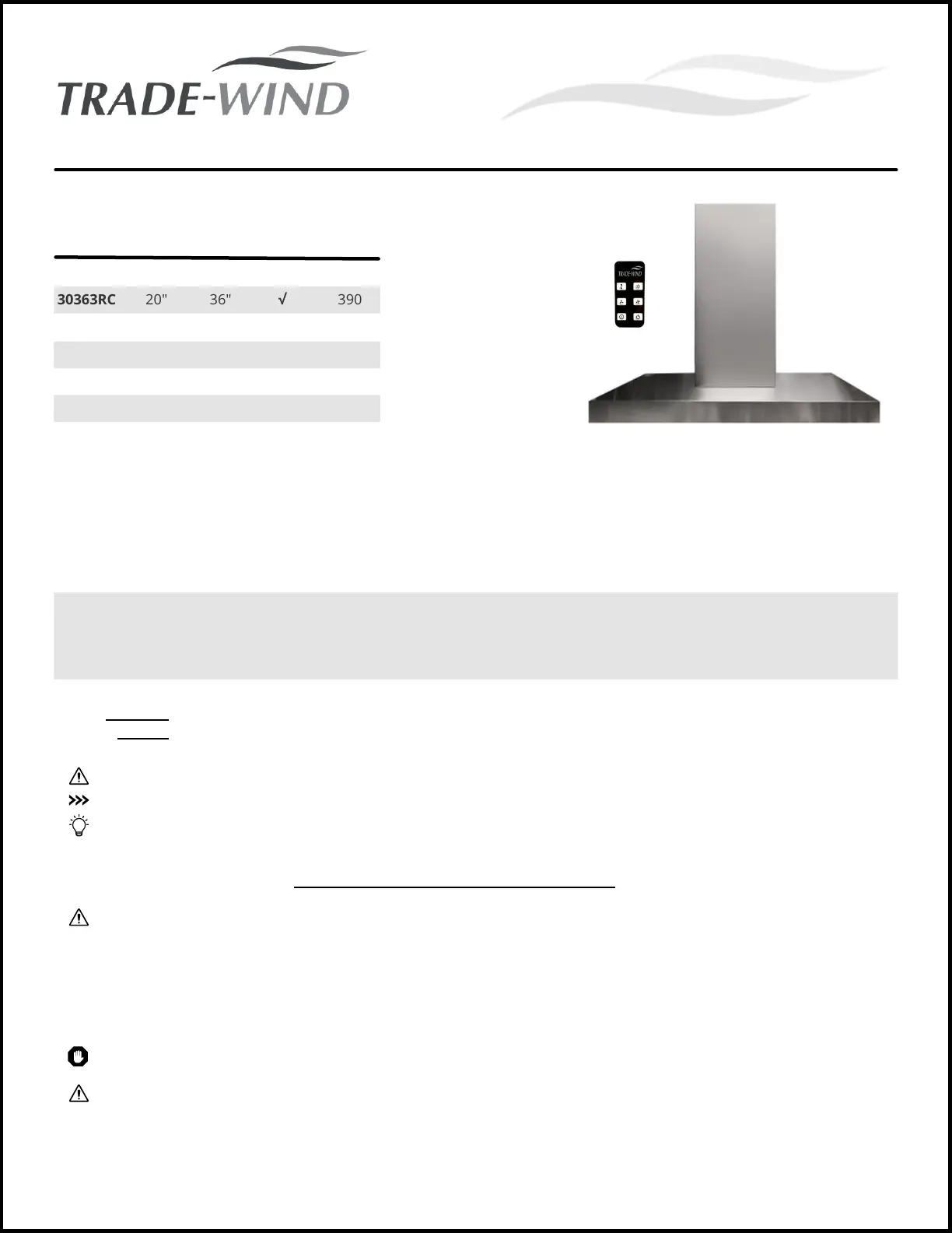 Les nedenfor 📖 manual på norsk for Trade-Wind 30366RC (11 sider) i kategorien Avtrekkshette. Denne guiden var nyttig for 22 personer og ble vurdert med 4.3 stjerner i gjennomsnitt av 11.5 brukere