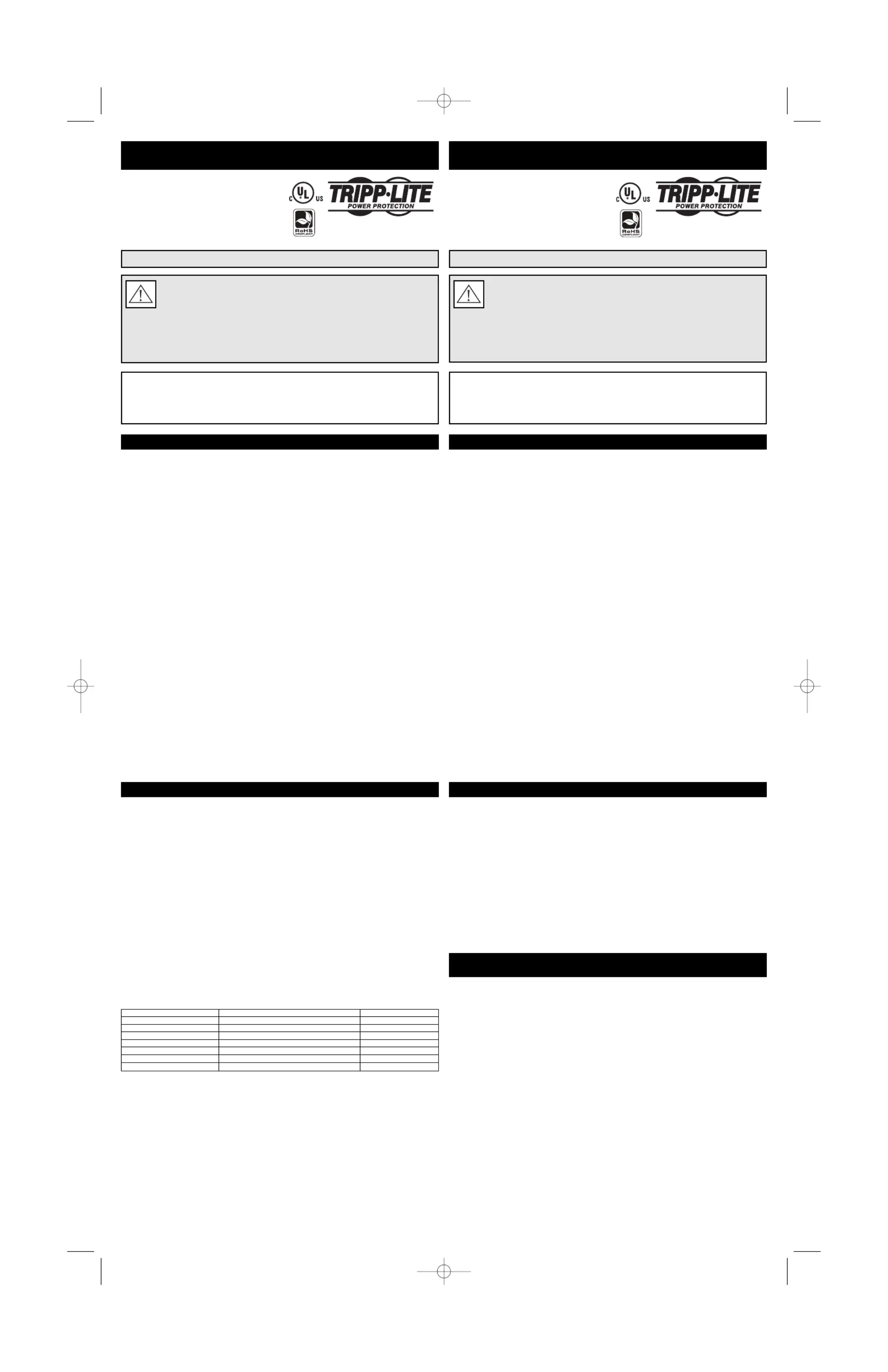 Les garanties de tous les systèmes de TRIPP LITE seront nulles si un parasurtenseur a été branché à ses prises de sortie.